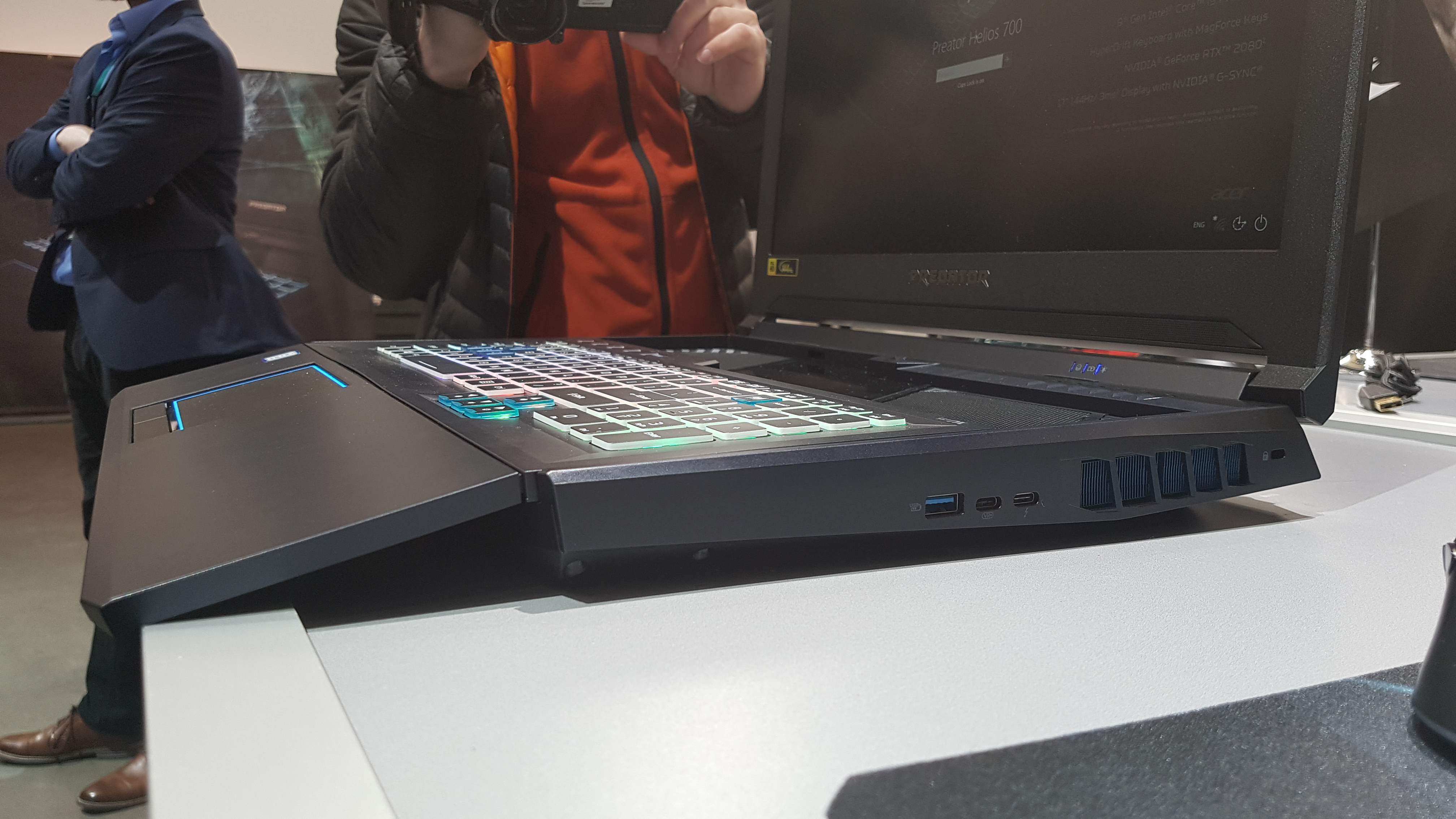 Seulement, la fonctionnalité du Helios 700 la plus impressionnante concerne effectivement son clavier, mais pas là où on le croit. Toute la surface du clavier peut coulisser pour laisser apparaître deux zones de ventilation et une vitrine (oui) qui fait la part belle au système de refroidissement de la bête.