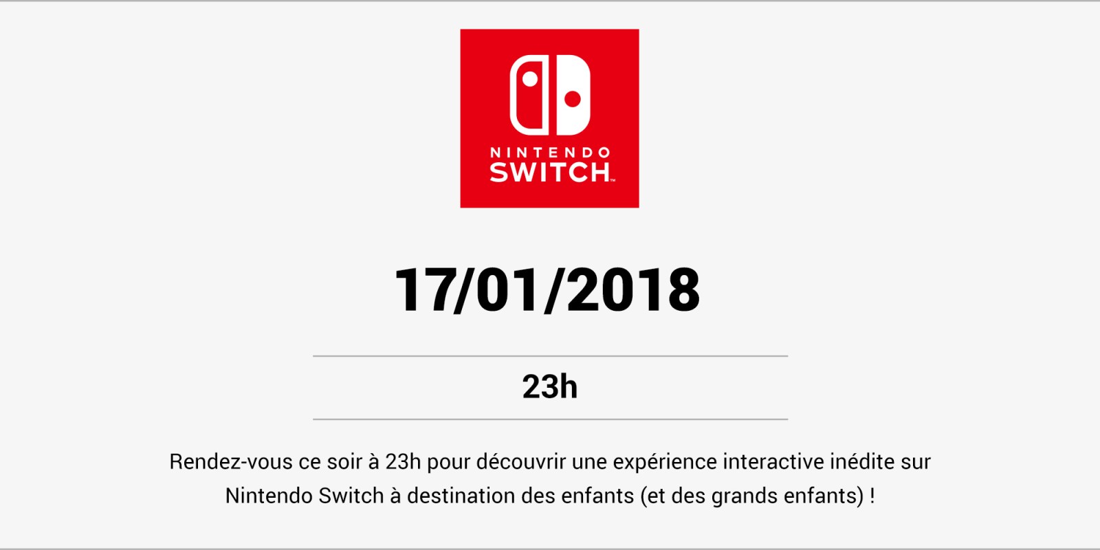 Il est difficile de quoi il sera question, et la dernière phrase laisse perplexe. Jusqu’à quel degré les enfants sont-ils la cible ? On sait que la firme de Kyoto privilégie le grand public (dans le sens : tout le monde, y compris les adultes) mais il faut avouer qu’on est à présent plutôt intrigué. Est-ce réellement une fonctionnalité de la Switch encore non implémentée, un nouvel accessoire (la VR?) un logiciel propre à Nintendo ou un nouveau jeu ? Rendez-vous ce soir donc.