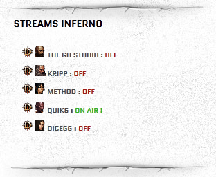 Pour le panel de streams externes, vous le trouverez donc sur l’accueil de warlegend.net. En un coup d’oeil, il vous sera possible de voir les tops streams de vos MMO/RPG favoris, avec par exemple Method pour Diablo 3. Codé par KabaL, ce petit programme utilise l’API des principales chaînes de stream et affiche automatiquement si une chaîne est en ligne (ON AIR ! vert clignotant) ou coupée (OFF en rouge). Pratique non?
