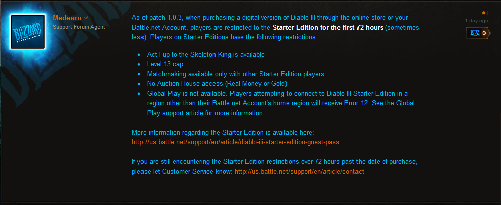 Ha, nous vous rappelons que notre partenaire GoCleCD.FR permet l’achat de clé version complète, ce qui permet d’acheter Diablo III moins cher et sans cette restriction.