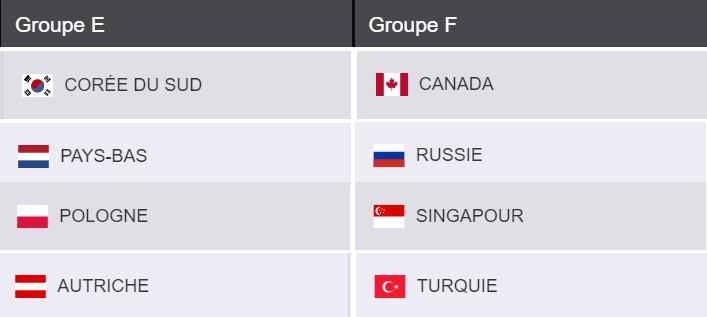 16h – Canada vs Russie / 18h – Singapour vs Turquie