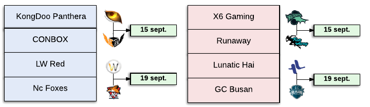 Alors que les yeux sont rivés sur les Contenders en Europe, l’APEX bat son plein en Corée du Sud. La première phase de groupes s’étant clôturée le 11 septembre, deux équipes par groupes ont été éliminées et la seconde phase commencera le vendredi 15.