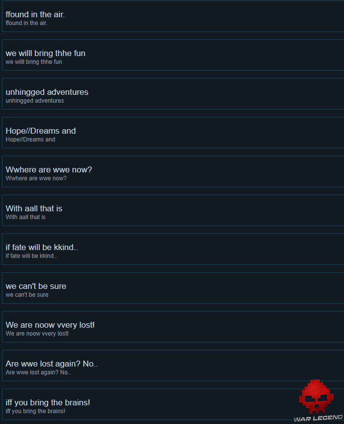 Ils n’ont pas été traduits en français mais l’ambiance reste macabre avec notamment « sii vous amenez les cerveaux » ou encore « Ooù sommes-nnous à présent ? » et « Sommes-nnous encore perdus ? »