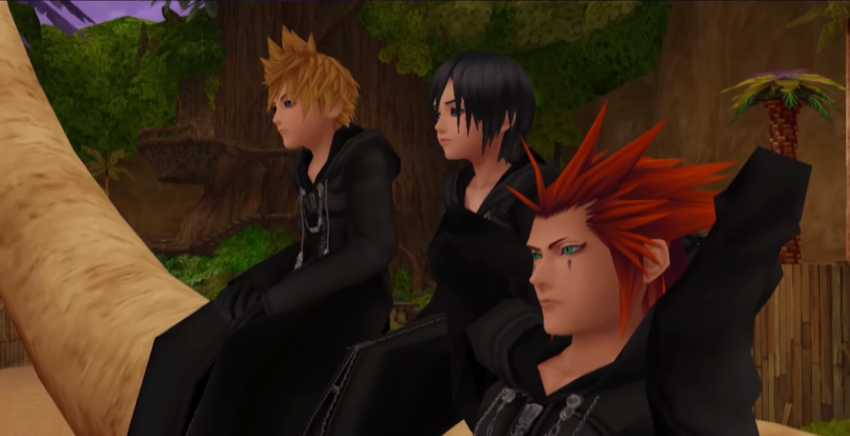 Pensant l’absence de son ami, Roxas avait emmené Xion sur la tour de l’Horloge, et suggère qu’à partir de maintenant, ils soient 3 pour partager ces moments de détente. La routine jusque là réservée à Axel et Roxas accueillait désormais aussi Xion.