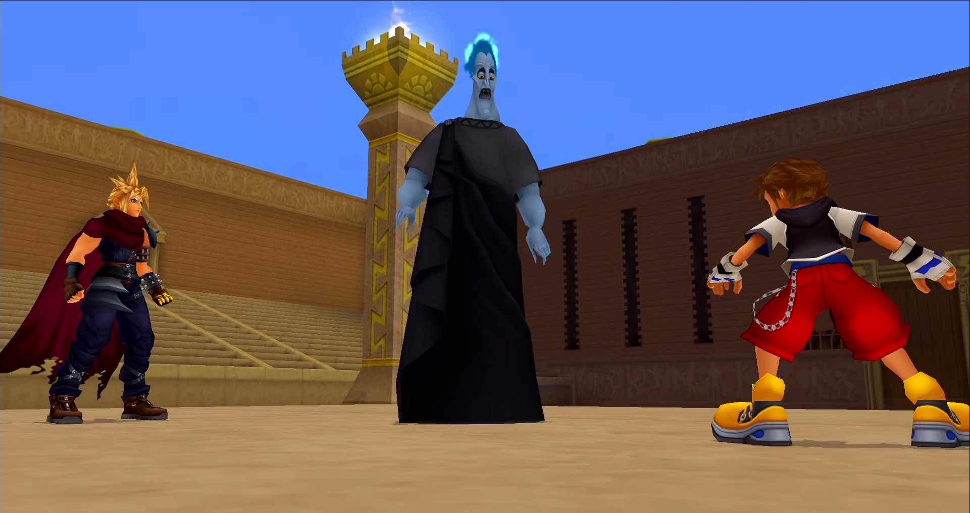 Sora souhaitant malgré tout la protéger en dépit de l’éclatante vérité, il affronte la vile femme électrique une nouvelle fois. Il est très vite aidé par Donald et Dingo, à présent revenu à ses côtés, et tous trois parviennent à détruire Larxene.