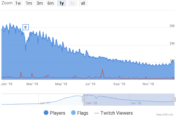 Après être descendue en dessous du million de joueurs depuis septembre, la page des statistiques de Steam et Steam DB montrent bien que l’intérêt pour PUBG n’est pas mort et que les derniers changements de gameplay, la nouvelle carte et le nouveau contenu sont particulièrement appréciés. Outre l’effet de curiosité qui dure habituellement deux ou trois jours, le nombre de joueurs récurrents a augmenté.