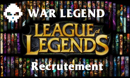 Aujourd’hui, nous souhaitons annoncer la constitution d’une Line Up 2 qui jouera également sous le nom War Legend mais qui, cependant, se verra attribuer des objectifs différents. Si vous avez… – Un niveau Diamond 5 ou plus sur les positions top, mid, adc et jungler. – La capacité à vous intégrer dans un groupe structuré, rigoureux et discipliné – De solides connaissances de League of legends et de sa scène e-sport – Une excellente maîtrise de votre position et de son pool de champion – Des disponibilités conséquentes (requis : 3 à 4 soirs par semaine minimum) – Un bon esprit d’équipe et la capacité de vous remettre en question. – Un bon PC, une connexion stable, un micro parfaitement fonctionnel … Et si vous souhaitez rejoindre le projet dans l’hypothèse où vous êtes diamant 5 ou plus, ajoutez WL Dibs in game et précisez l’objet de votre ajout.