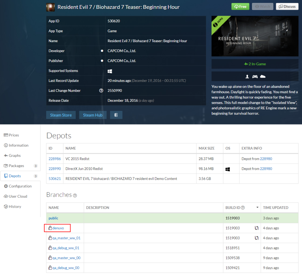 Comme vous pouvez le constater sur l’image, la protection anti-piratage, qui est beaucoup contestée, est déjà présente sur la démo du jeu. Il n’y a aucun doute à avoir, Denuvo sera aussi présente dans la version finale, pour le plus grand malheur de certains. Tous les joueurs PC devront donc mettre la main au portefeuille s’ils veulent profiter de l’expérience que proposera Resident Evil 7.