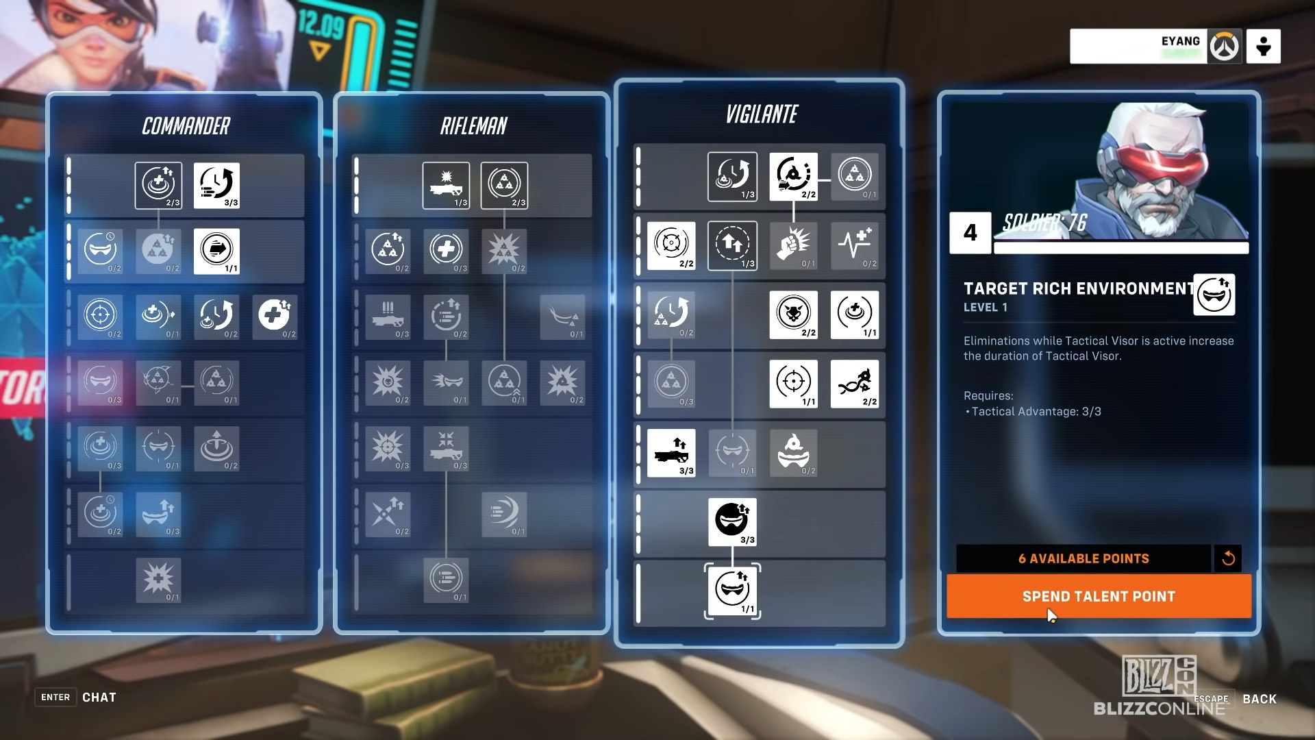 Chaque héros possède désormais divers arbres de talents qui appliqueront des effets bien tangibles sur leurs capacités : la balise de soin de Soldat : 76 peut le suivre et/ou repousser les ennemis, Ange/Mercy peut tirer de gros projectiles explosifs, Chacal/Junkrat peut manier 2 lance-grenades, avec la possibilité d’ajouter des effets élémentaires, etc…