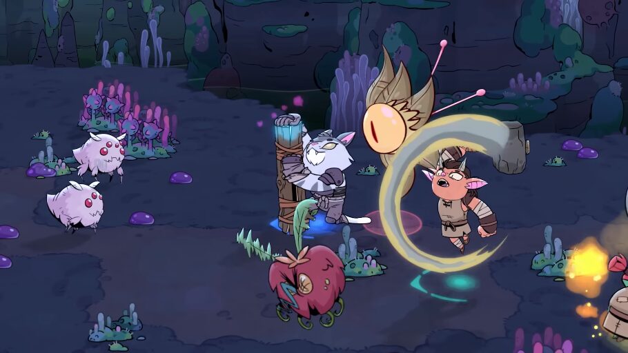 Dans Rotwood, vous aurez donc la joie de fracasser les gencives d’immondes créatures des bois pour les empêcher d’envahir votre petit havre de paix. Vous pourrez équiper des lances, des ballons, et tout un tas d’autres armes qui s’étofferont au fil des mises à jour. Toutes les armes seront dotées de leurs propres combos et les développeurs assurent justement qu’il sera nécessaire de maîtriser son sens du timing plutôt que de masher comme un forcené. Des boss énormes seront bien entendu aussi de la partie et entre chaque run, vous aurez le loisir de sélectionner différentes capacités et pouvoirs afin de mettre sur pied les builds les plus pétés avec vos petits camarades. Parce que oui, ces bois pourris pourront bien être traversés en coopération.