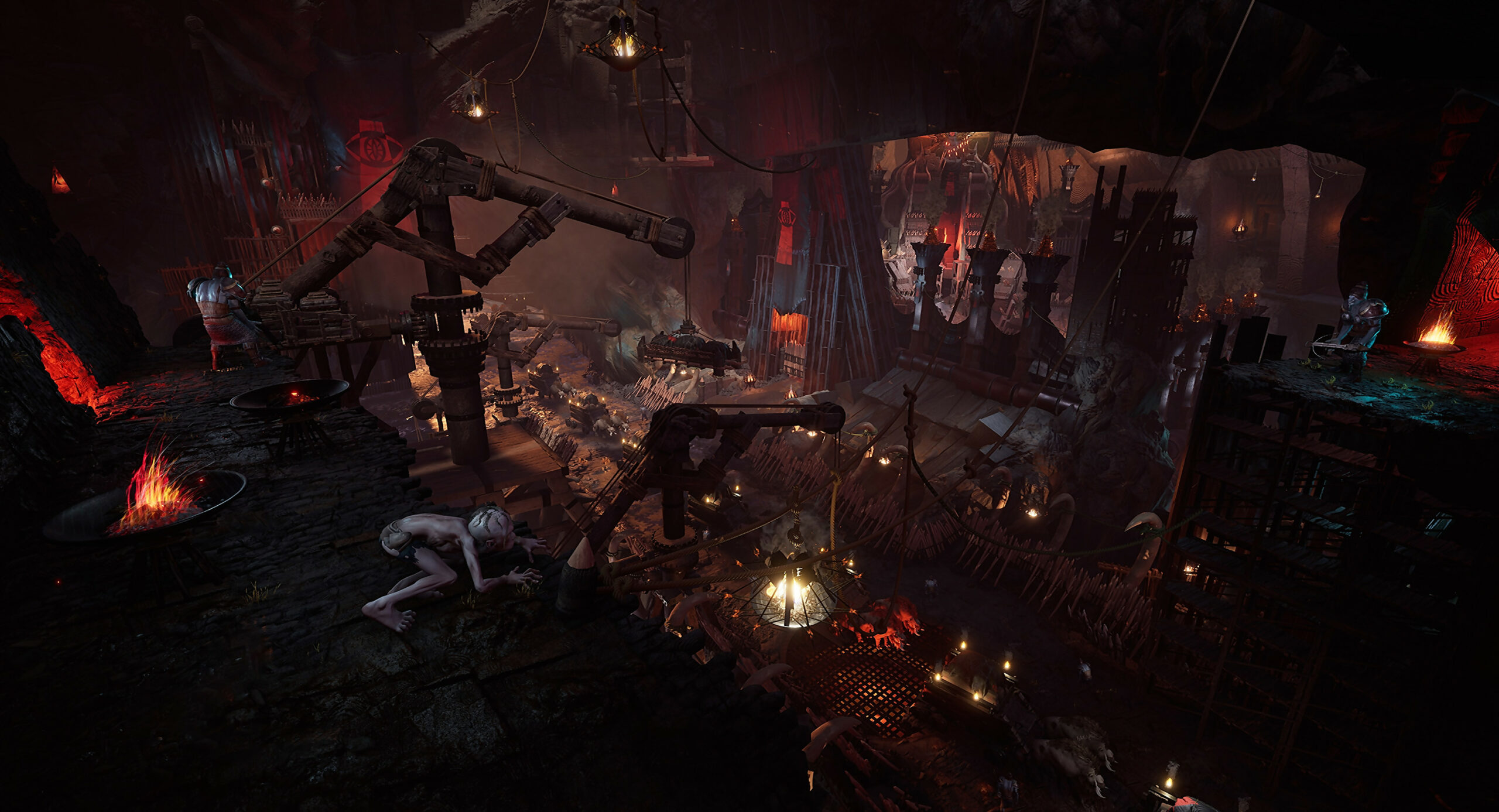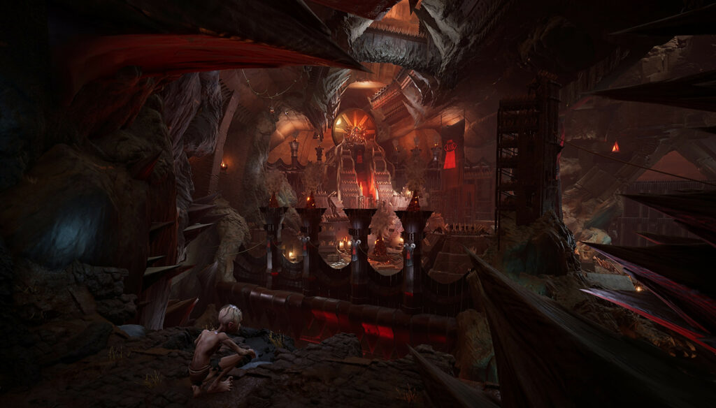 L’inspiration des films de Peter Jackson (et des jeux Mordor) est clairement présente, mais on sent bien qu’il fallait que le studio s’éloigne un minimum de l’imagerie que l’on a de l’univers cinématographique de Tolkien. Cela s’explique sans doute par le fait que le studio allemand n’a pas les moyens de faire des graphismes photoréalistes, mais peut-être n’est-il pas plus mal de se réapproprier un minimum la légende de Gollum ? C’était en tout cas la volonté du directeur artistique Mathias Fischer, qui avait affirmé vouloir se rapprocher des écrits.