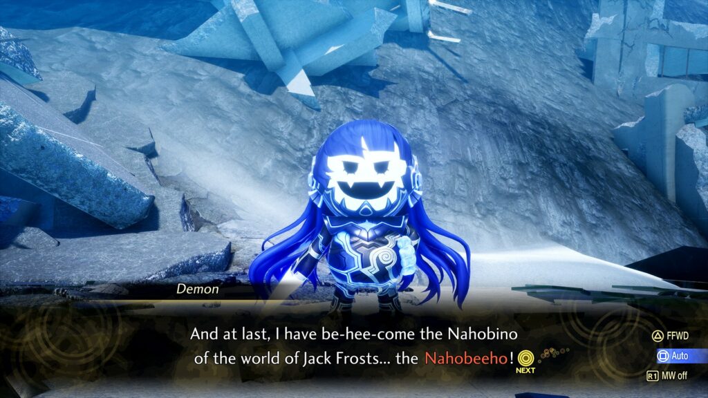 Nouveaux ennemis oui, mais aussi nouveau Nahobino, puisqu’en suivant Yoko Hiromine, la jeune fille au centre de cette voie de la Vengeance, le bout d’chou a visiblement fait un saut chez le coupe-tifs. Cheveux blancs coupés au carré, masque de ninja qui lui recouvre la bouche, et faucille qui lui émane du bout des doigts : on ne sait pas encore trop de quoi cette forme sera capable, mais notre flair de journaliste nous pousse à dire de façon totalement objective qu’elle est encore plus adorable que la précédente.