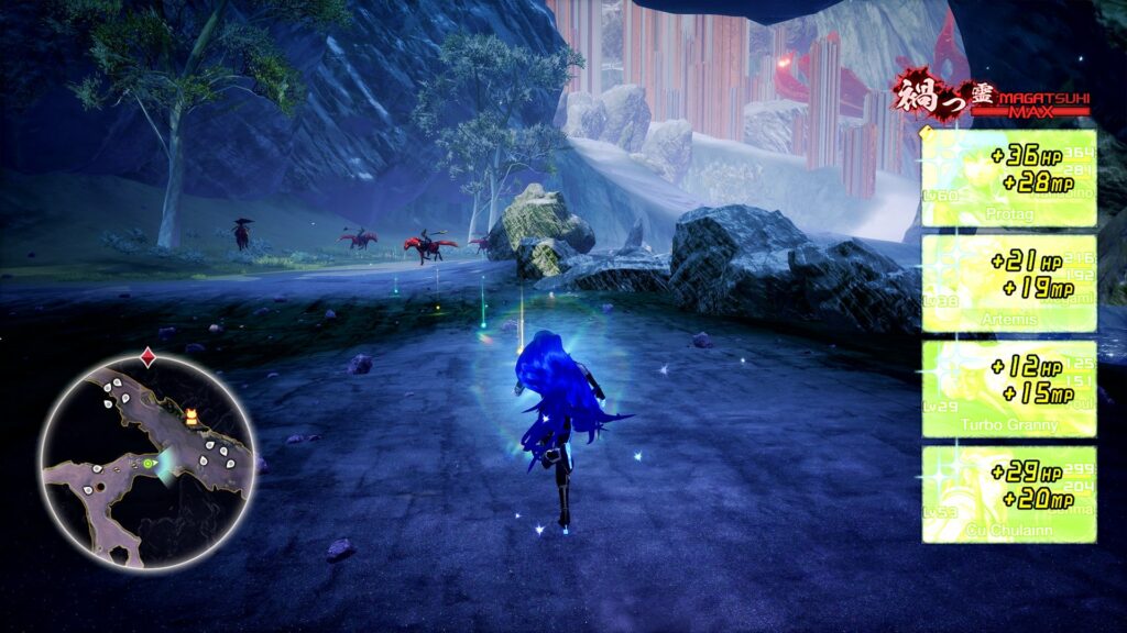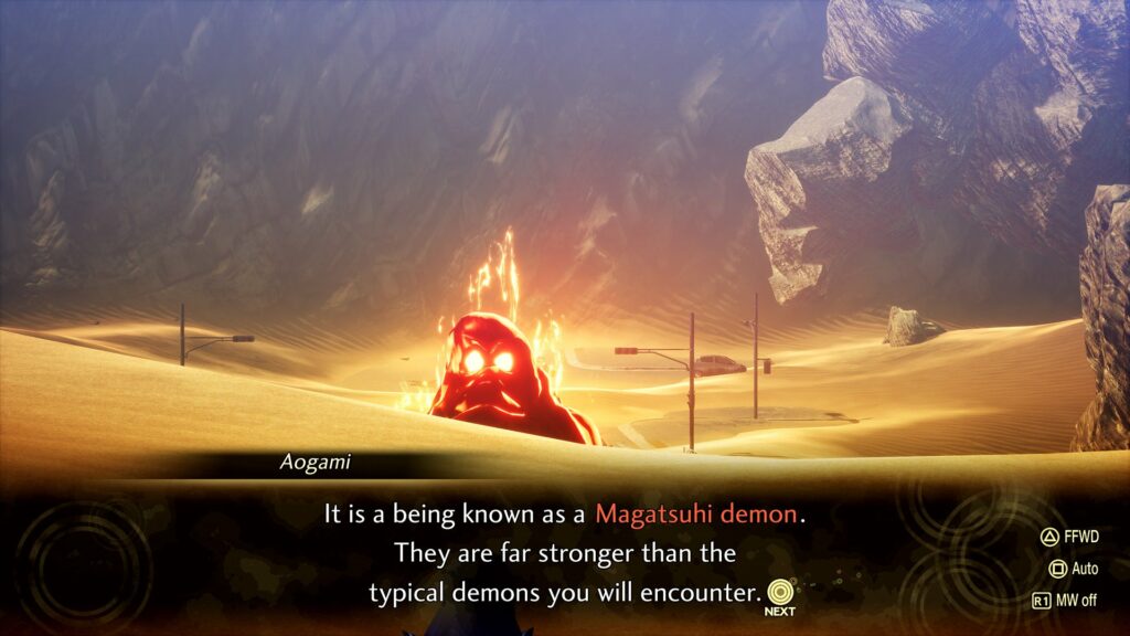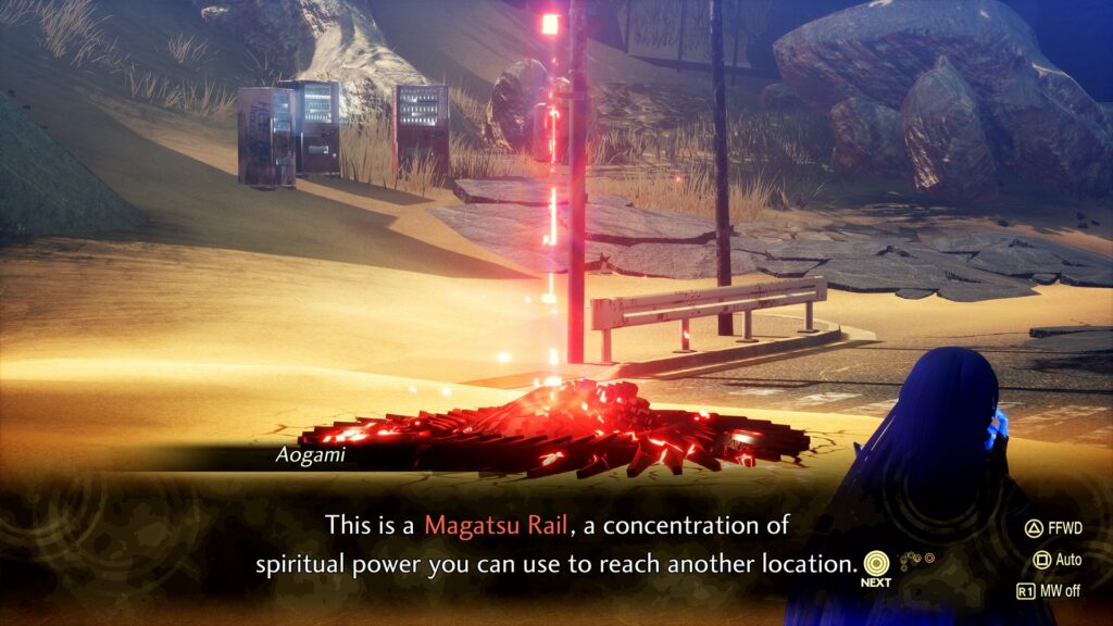 Quelle que soit l’aventure choisie, on sait que dans tous les cas, l’exploration devrait être un poil différente. Des cristaux seront éparpillés au gré des vents pour récupérer ses ressources, des Rails de Magatsuhi permettront de circuler entre deux points rapidement ou d’accéder à des lieux impossibles à atteindre autrement, et des démons Magatsuhi, plus puissants que leurs homologues, se retrouveront désormais à errer dans les sables pour vous coller des roustes monumentales.