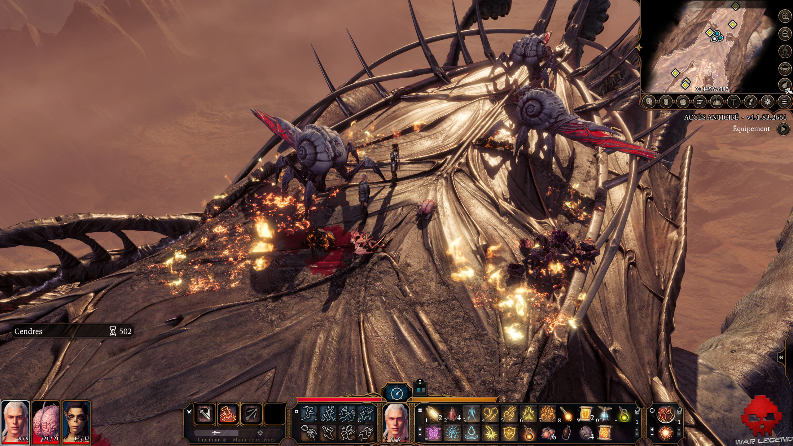 Vous allez affronter des diablotins avec elle, et possiblement « Nous », si vous avez choisi de le garder comme allié. Une fois ceci fait, montez les escaliers jusqu’à la passerelle. Avancez jusqu’aux canons et, si vous avez un sort d’eau ou que vous pouvez sauter, tout simplement, allez piller le cadavre du flagelleur mental.