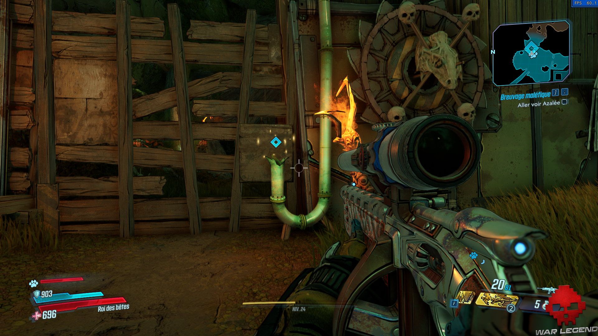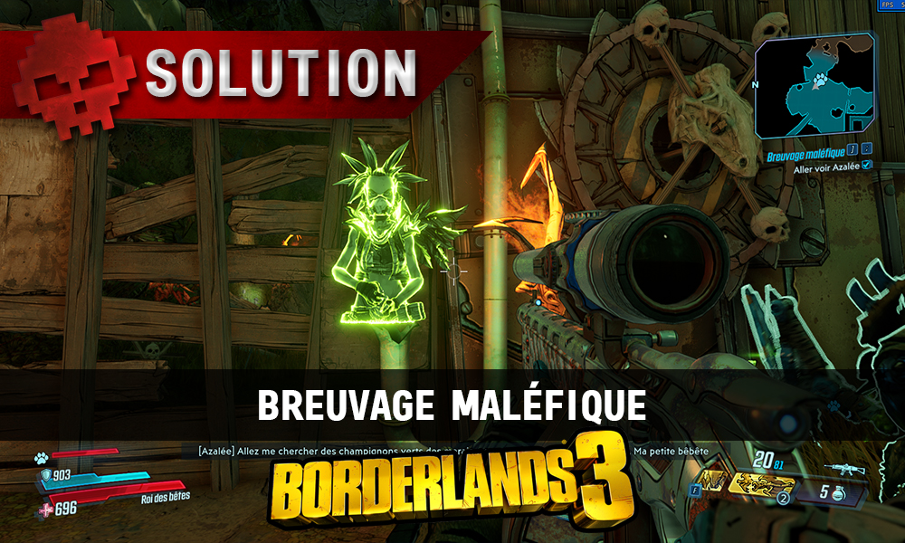 Prenez l’arme explosive que Murl vous tend et équipez-la. Grâce à cette dernière, détruisez tous les chaudrons d’Azalée dans les tourbières. À noter qu’il faut posséder l’arme de la quête en main pour voir les objectifs.