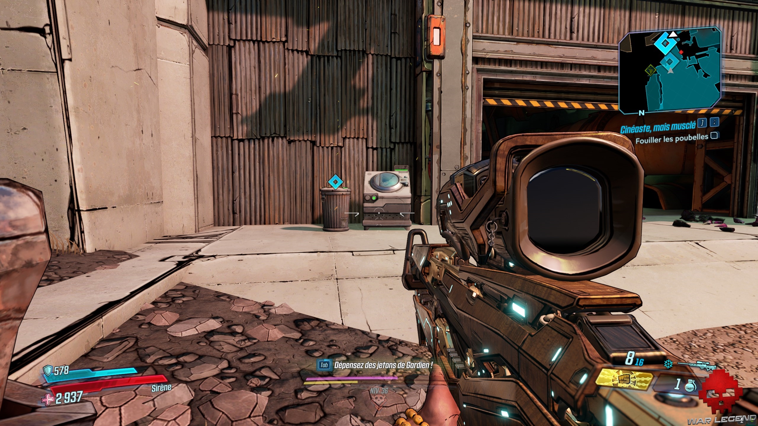 Allez au Péché-Multiplexe juste à côté et fouillez les poubelles aux endroits indiqués afin de trouver son disque ECHO. L’endroit est bien entendu truffé de bandits, mais eh, à défaut d’être cinéaste et subtil, vous savez trucider des trucs comme jamais. La première poubelle à fouiller se situe dans un petit bâtiment en face de l’entrée. La seconde est devant l’entrée de garage plus loin dans le Multiplexe tandis que la troisième et dernière est juste à l’étage.