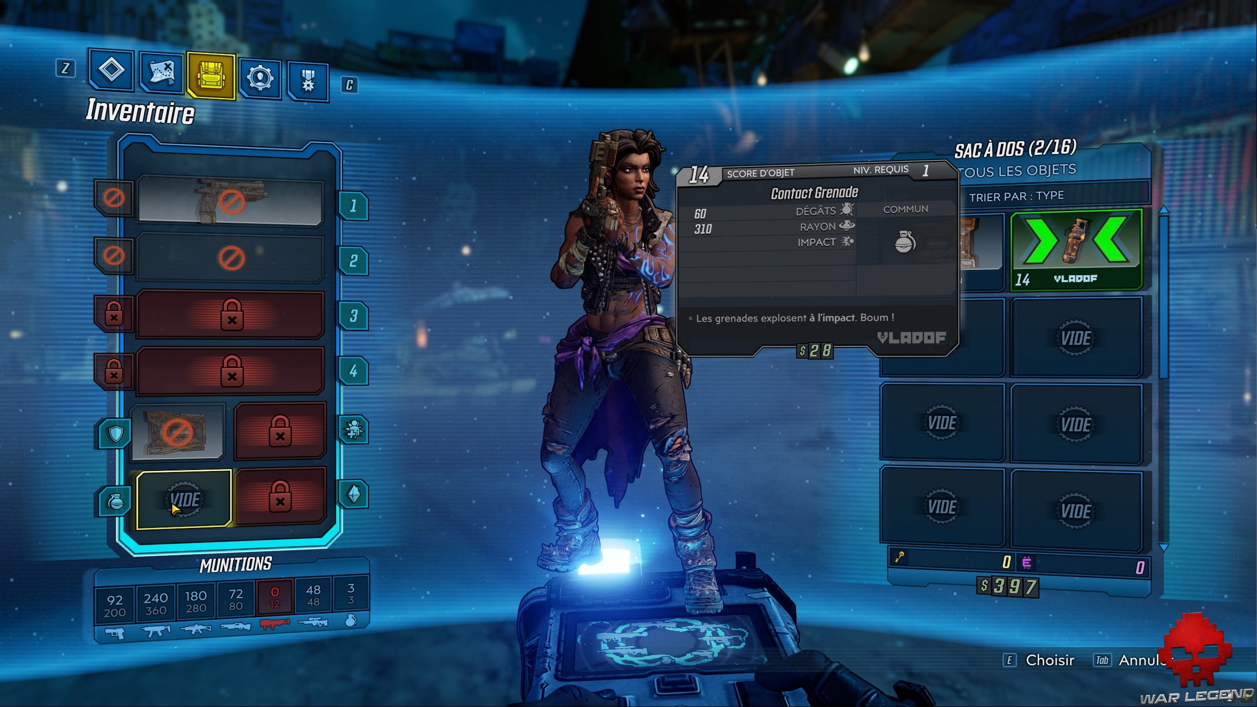 La première chose qui vous ait demandé de faire est d’équiper un mod grenade. Il vous suffit d’aller dans les menus, sélectionner le mod en question puis le mettre dans l’emplacement prévu.