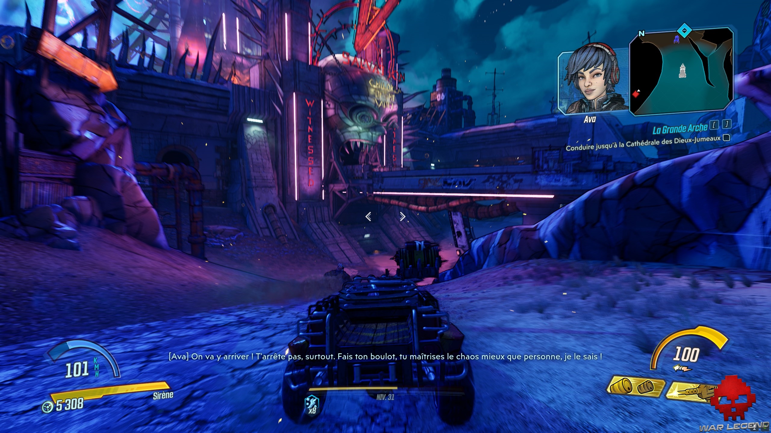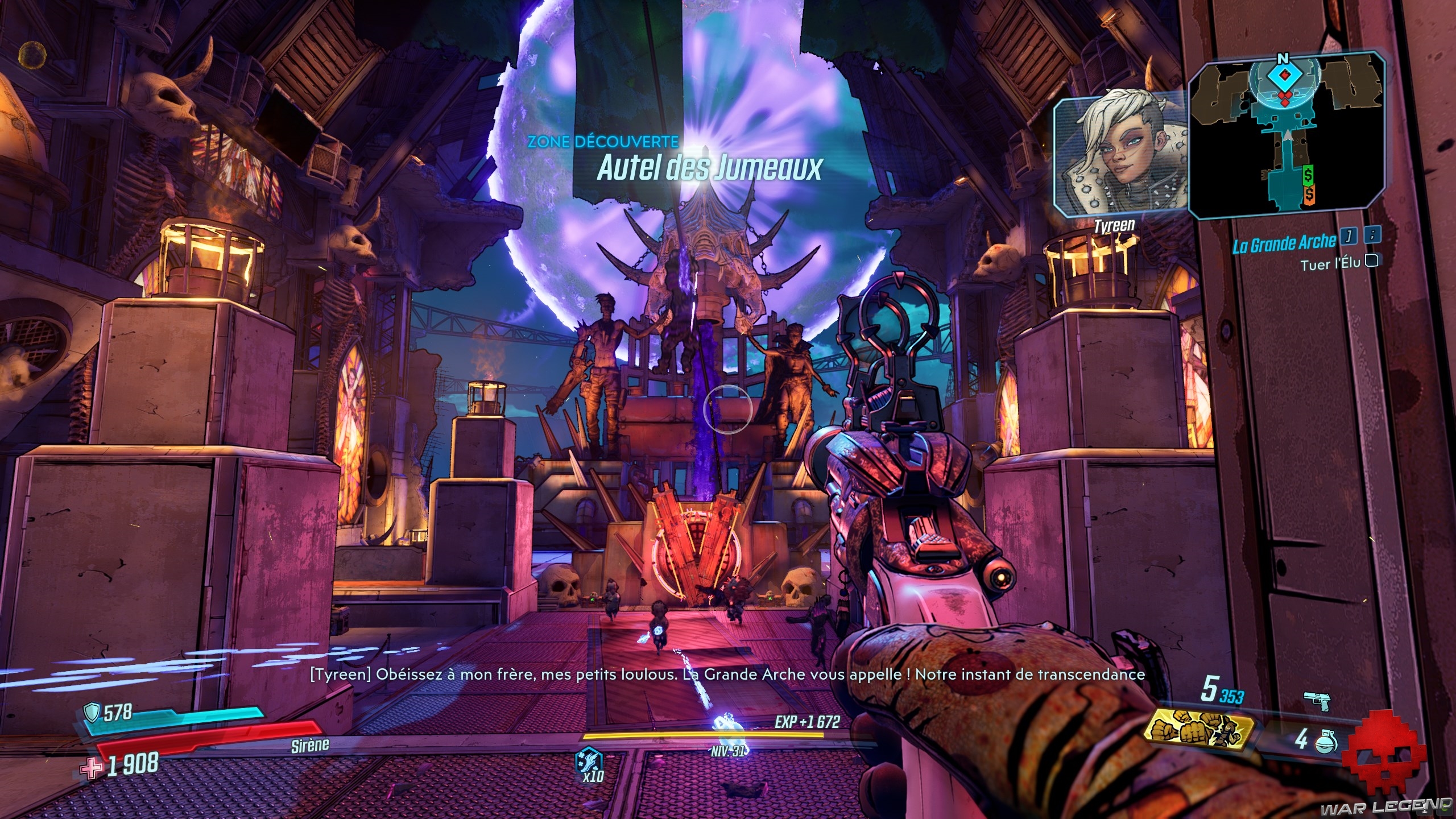 Arrêtez-vous dans la zone juste avant les tourelles et éliminez les Descendants de l’Arche qui s’y trouvent. Suite à cela, Tannis prend le contrôle des tourelles, vous permettant, vous et le reste des Pillards, de rentrer dans la Cathédrale des Dieu-Jumeaux.