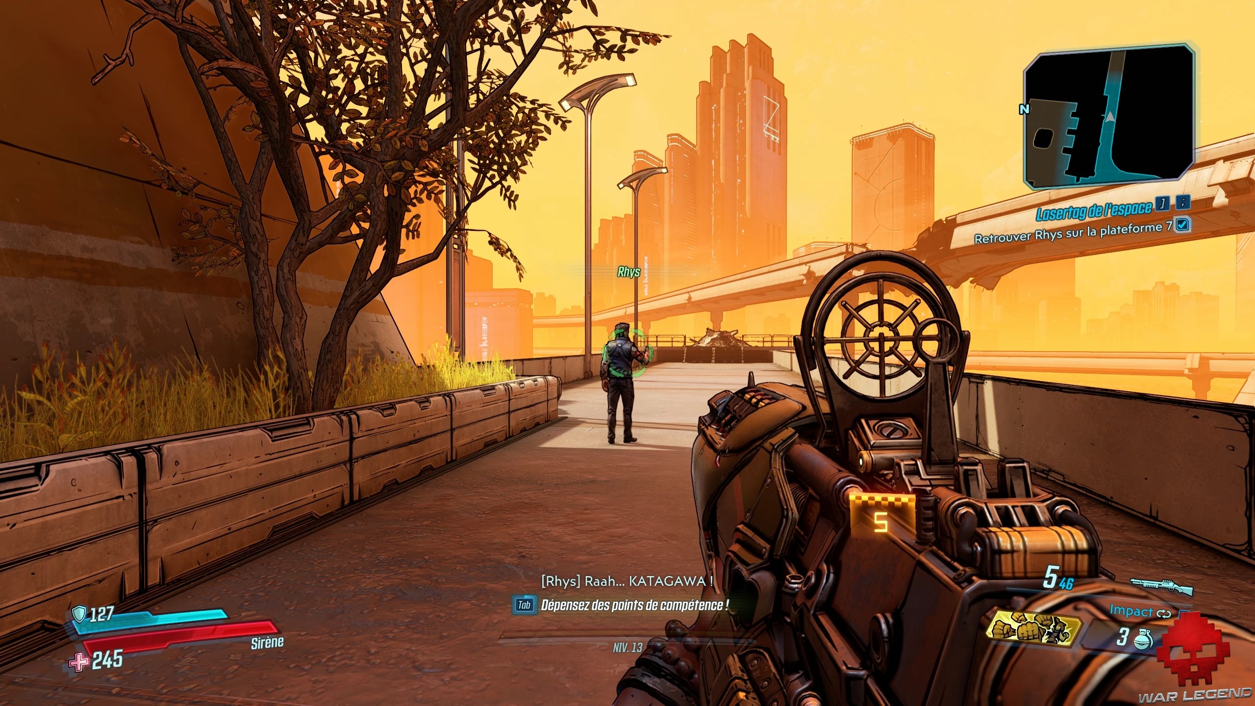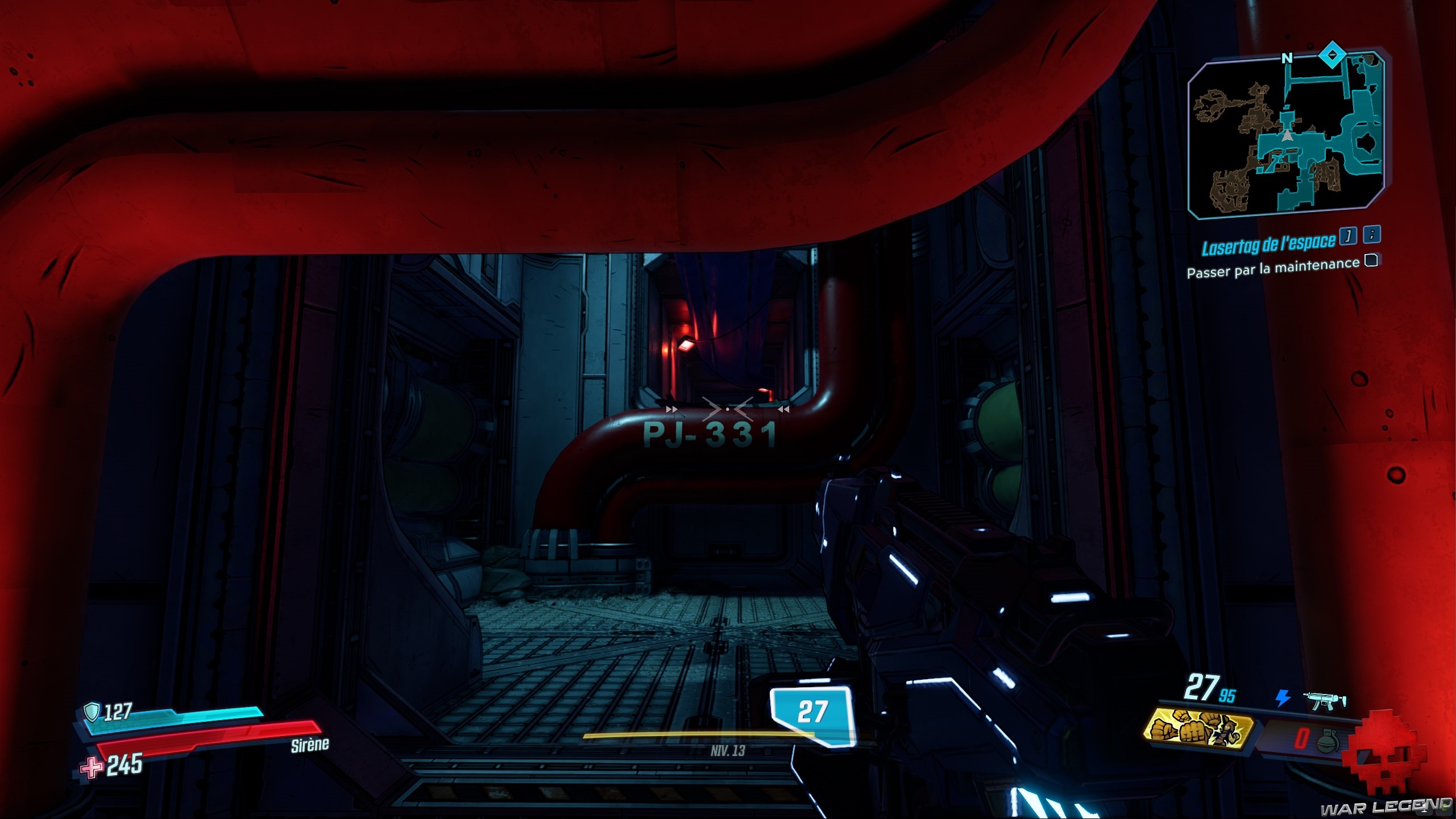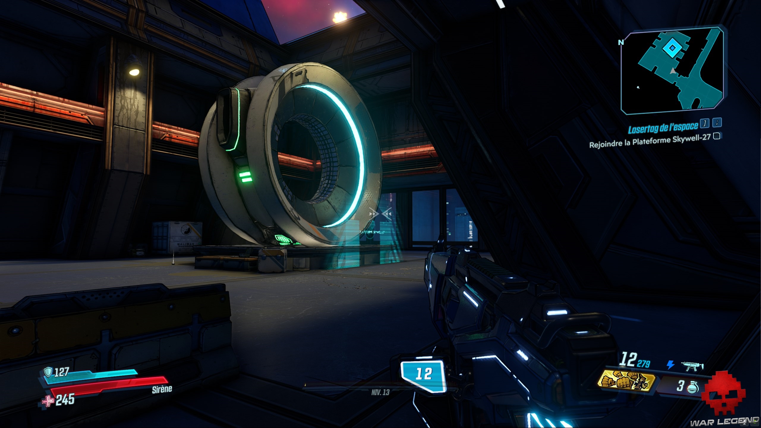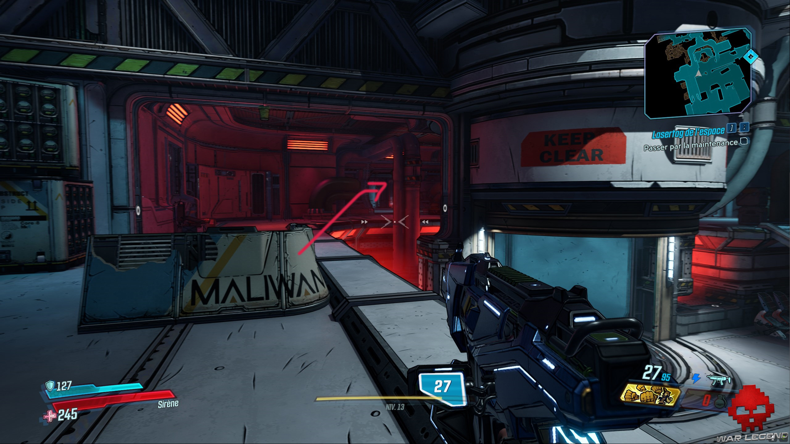 Katagawa Jr (l’homme à la tête de Maliwan) ayant détruit le vaisseau de Rhys, ce dernier vous confie la « clé vipère » afin que vous puissiez pirater une navette Maliwan. Allez juste un peu en arrière et prenez la porte qui se trouve juste à droite. Utilisez la clé vipère pour l’ouvrir, dégommez les quelques ennemis qui attendent de l’autre côté, puis prenez la navette qui vous mènera à la Plateforme Skywell-27.