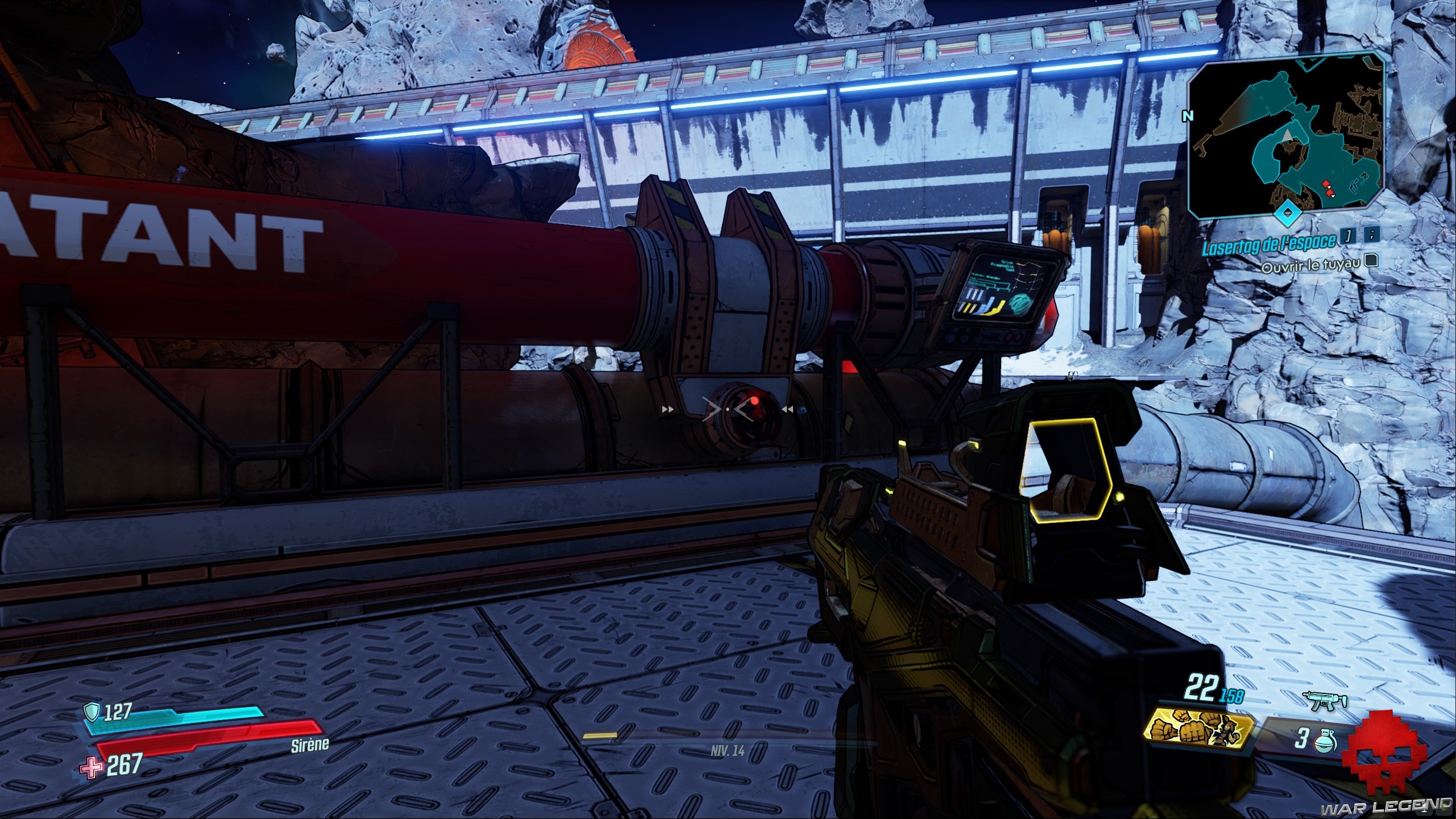 En avançant un peu plus, vous arrivez dans la zone où il vous faut ouvrir un tuyau. Dézinguez bandits et soldats Maliwan présents, puis prenez les escaliers du fond qui mènent jusqu’à un levier. Actionnez-le pour ouvrir le tuyau et sautez dans ce dernier.