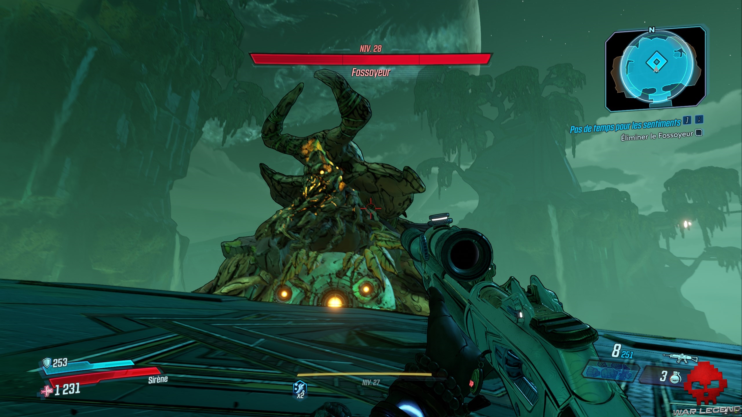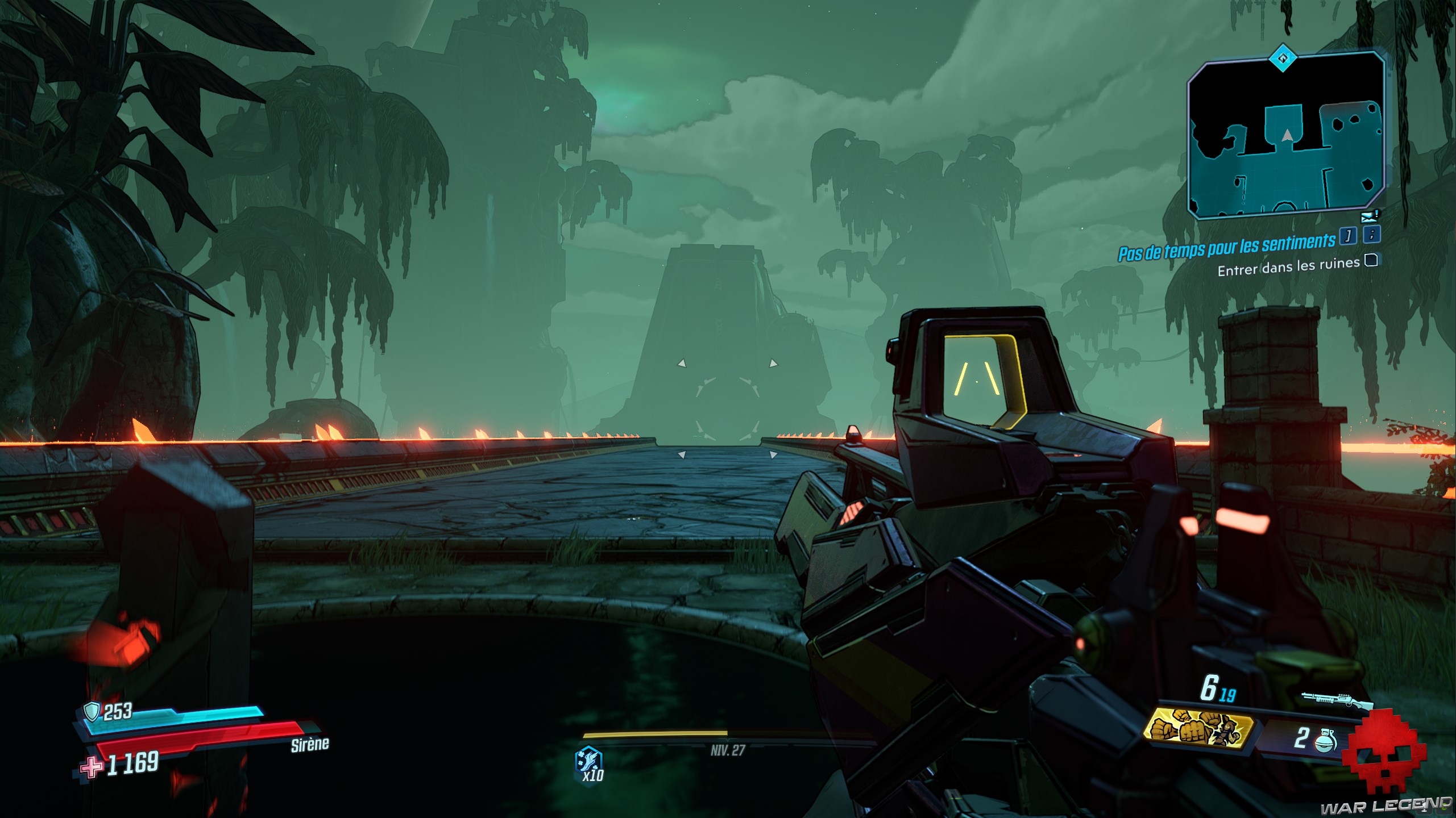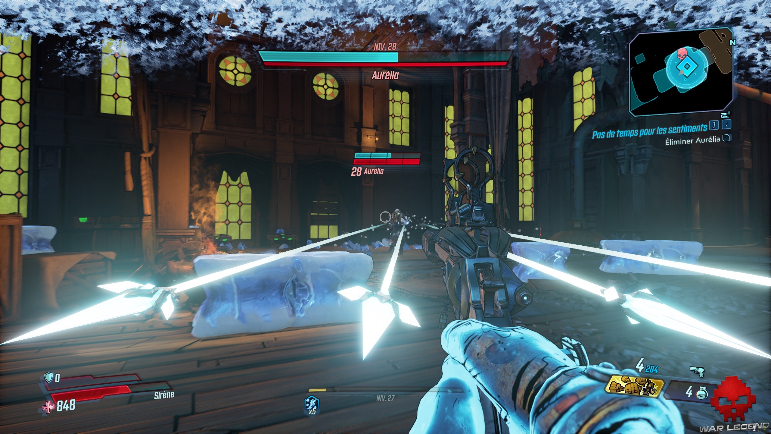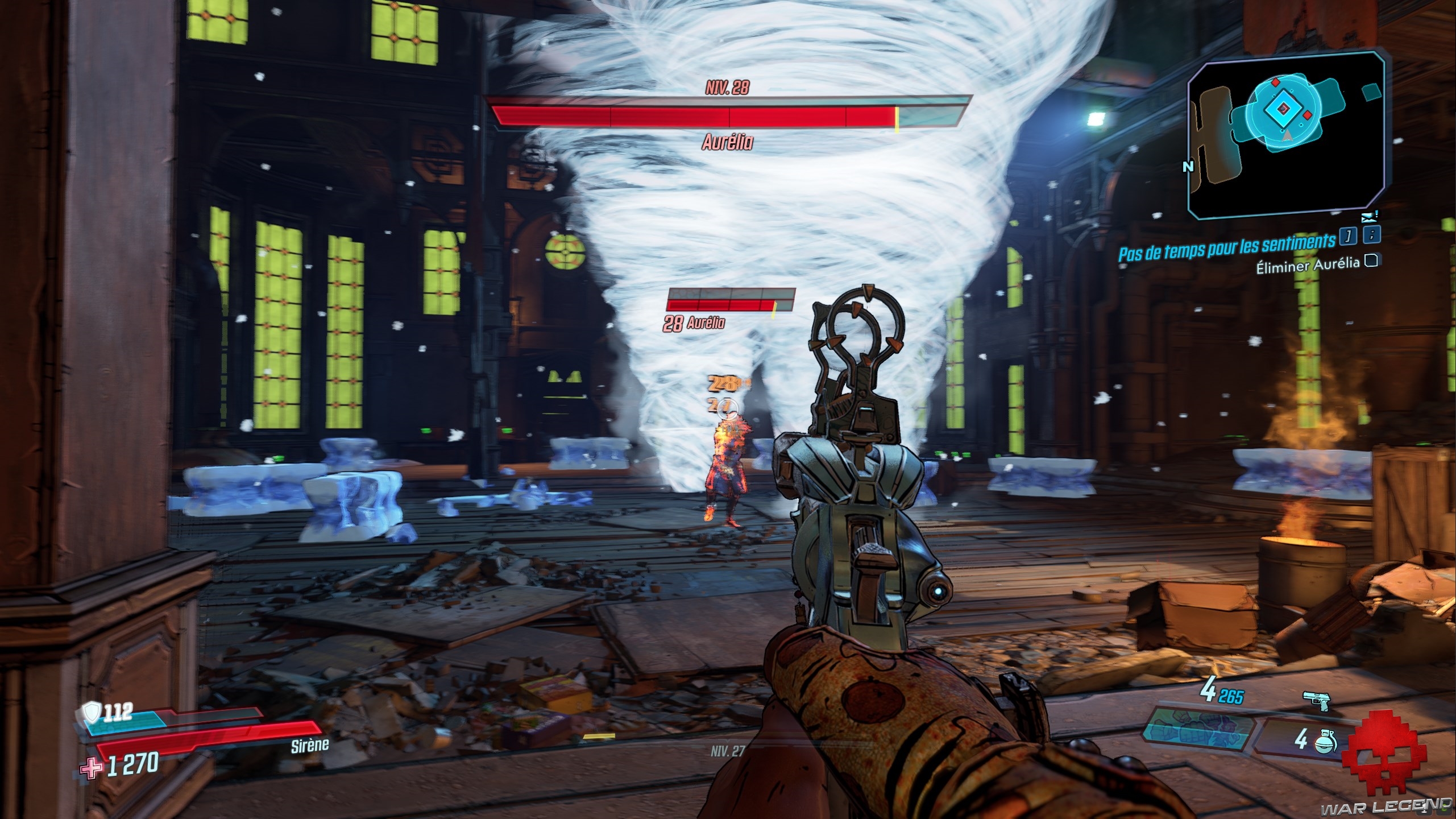 Le boss n’est pas bien dur, mais les dégâts sur votre tronche peuvent vite monter. Faites attention particulièrement attention à ses tornades, qui, en plus de vous envoyer en l’air, vous ralentisse. Du reste, détruisez le pilier de glace dans lequel Aurélia s’enferme : elle régénère très vite son bouclier une fois dedans. Après que vous l’ayez vaincu, parlez à Hammerlock.