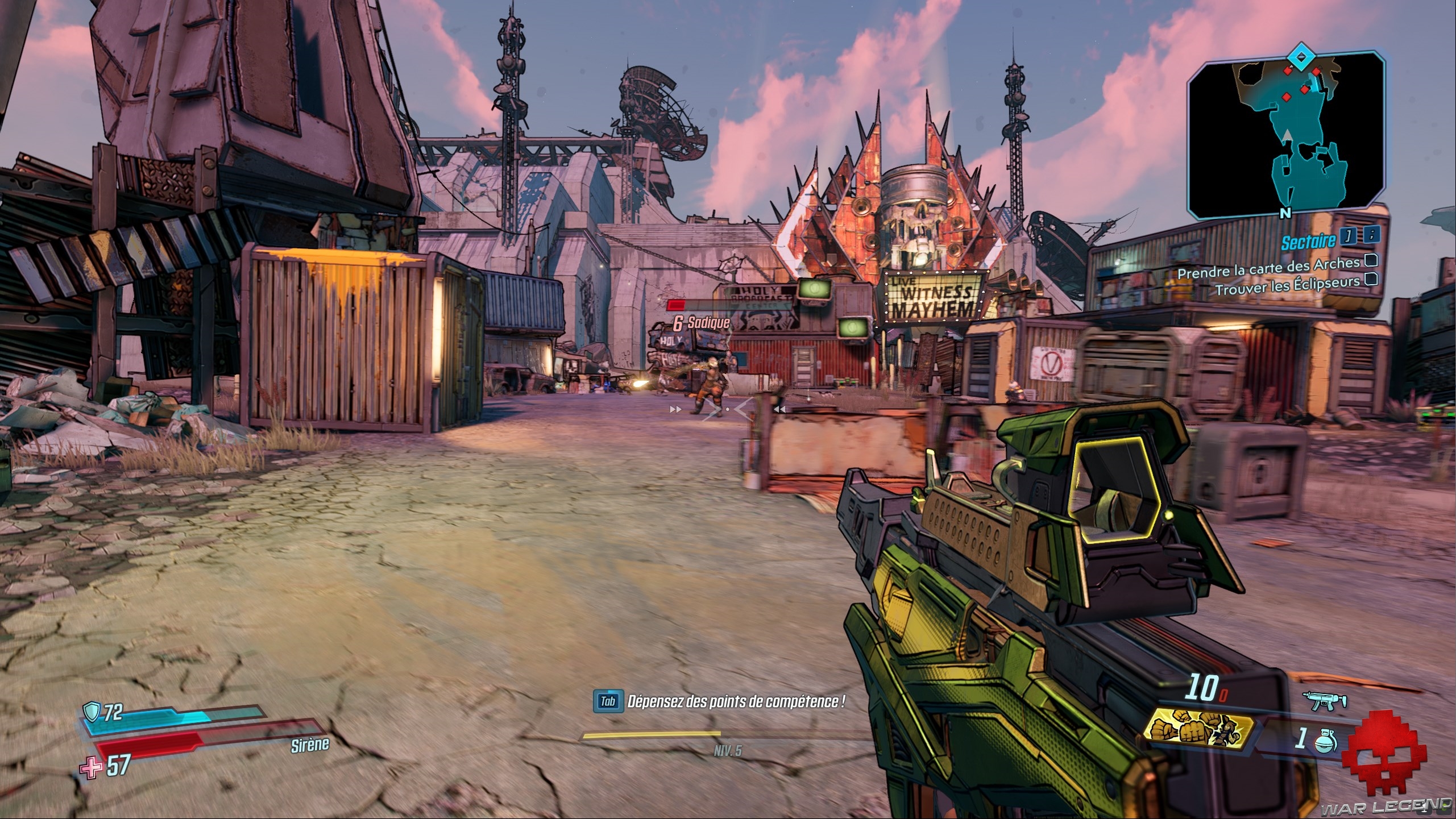 Lorsque vous avez enfin changé de zone, vous n’êtes plus qu’à la moitié du chemin vers votre objectif : le Saint-centre de diffusion. Arrivé à destination, vous devrez faire la suite à pied et une nouvelle tuerie de masse vous attend. Les ennemis ayant désormais un peu plus de niveaux, les dégâts dans la tronche vont évidemment crescendo ; vous allez d’ailleurs croiser un premier « brutal », bien plus énervés que ses petits copains.