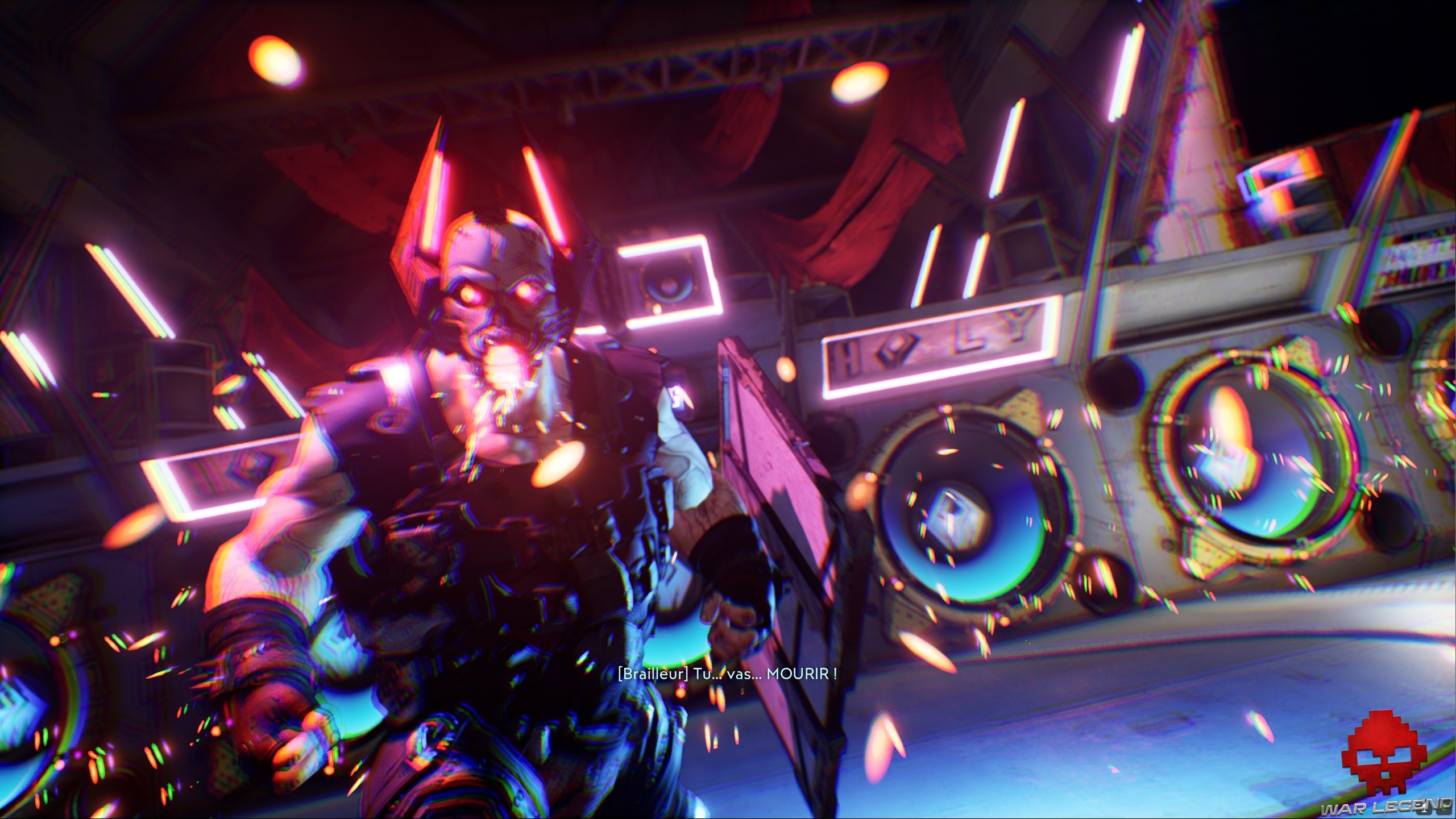 Vous voilà maintenant face à votre second combat de Boss, face à Brailleur et sa sono à en faire rougir Daft Punk. Cette dernière recouvre quasi l’intégralité de la zone de combat et comme expliquée plus haut, les enceintes ont tendance à vouloir votre mort.