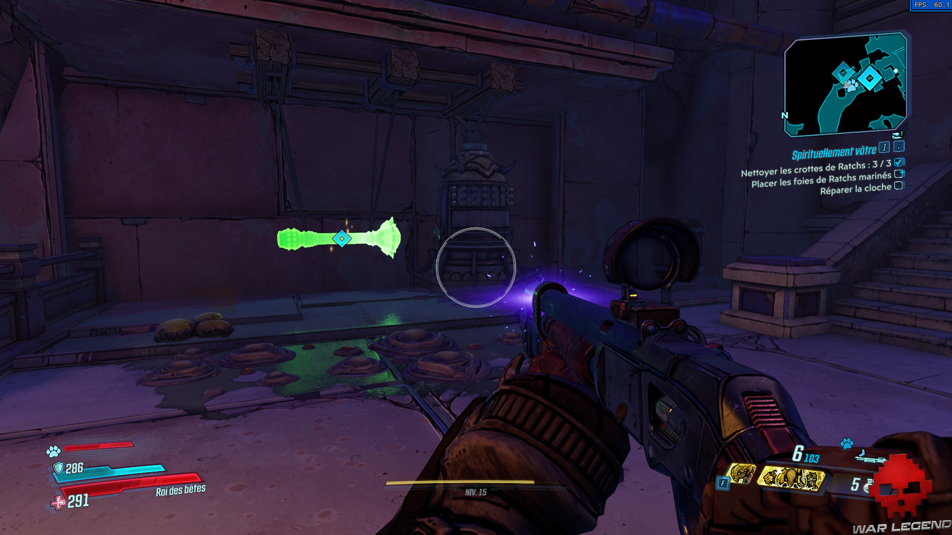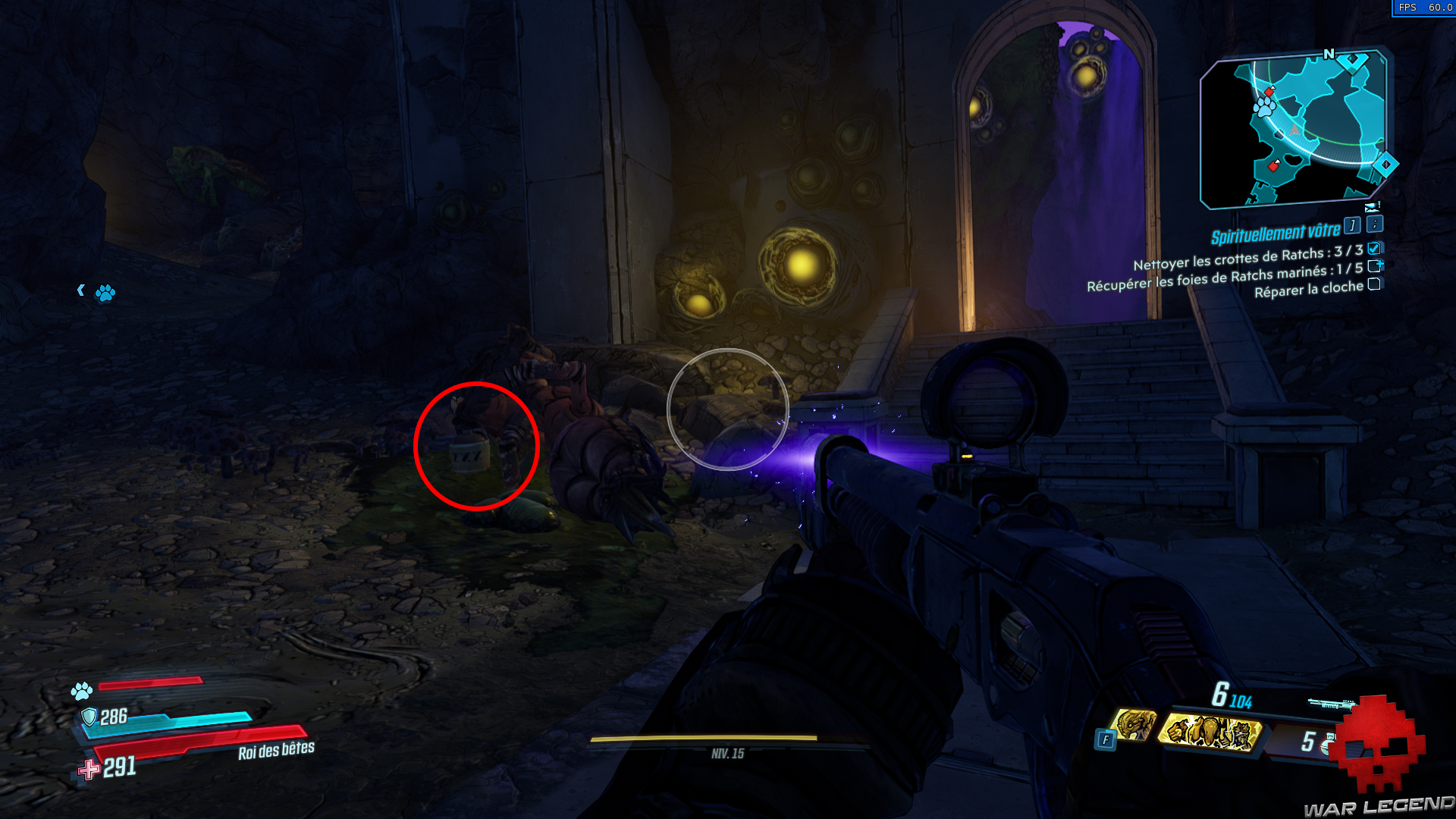 Retournez dans la première salle avec la cascade et dirigez-vous vers la porte bloquée à gauche de la grille. Tirez sur le tonneau en hauteur pour faire fondre la crotte et tuez le gros ratch derrière.