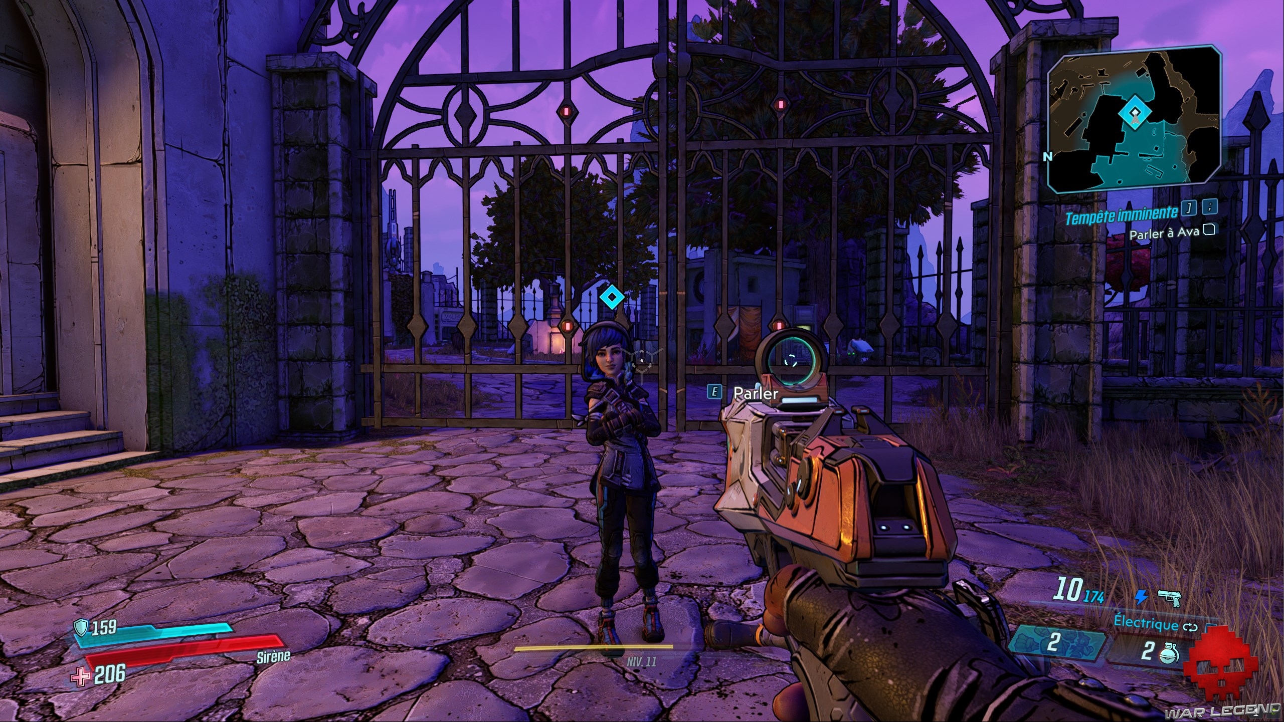 Après lui avoir parlé, entrez dans le cimetière et suivait Ava qui vous guide à travers les tombes à piller. Vous êtes bien entendu assaillis au même moment par une horde de soldats maliwan ; gare aux nombreux brutaux qui traînent et qui risquent de vous donner du fil à retordre.