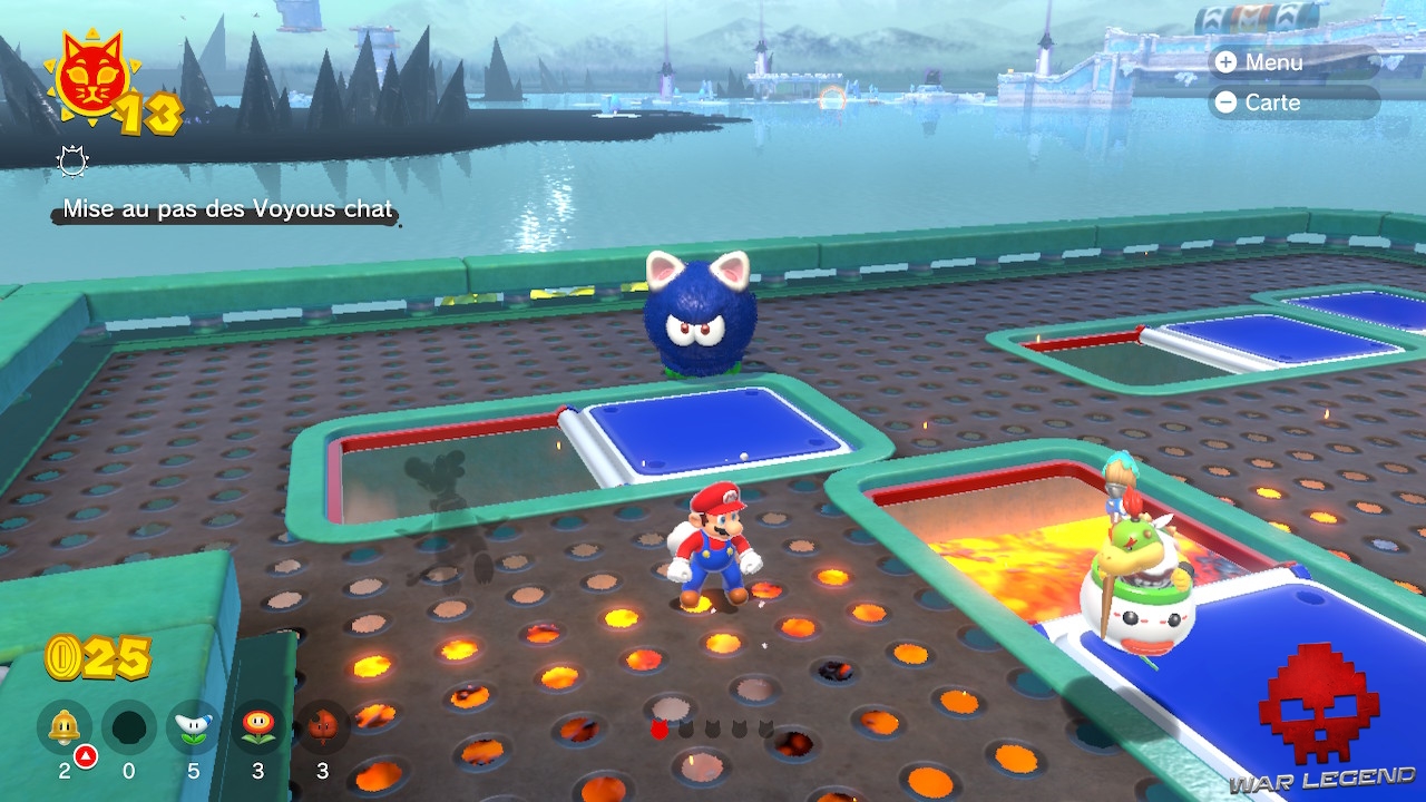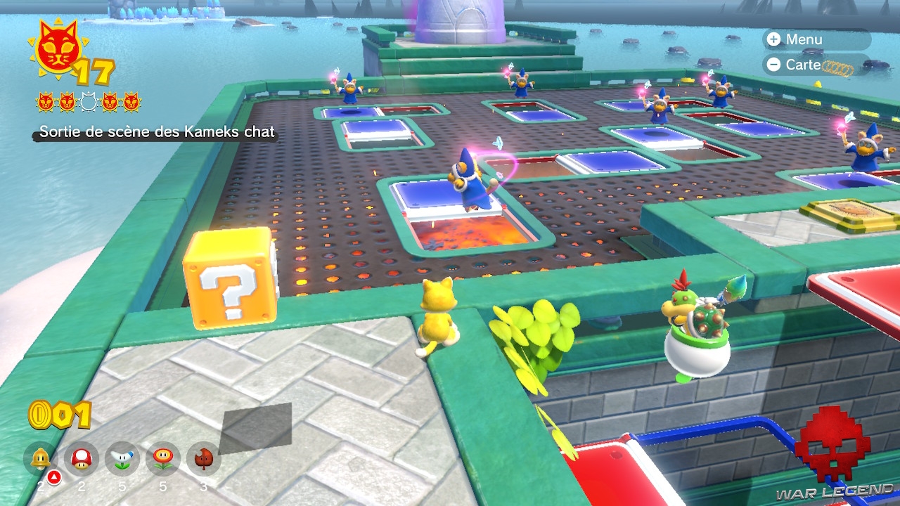 Ce troisième objectif est simple : dégommez les Kameks chat au sommet du château. Privilégiez les costumes d’attaques à distance pour éviter les plateformes traîtresses.