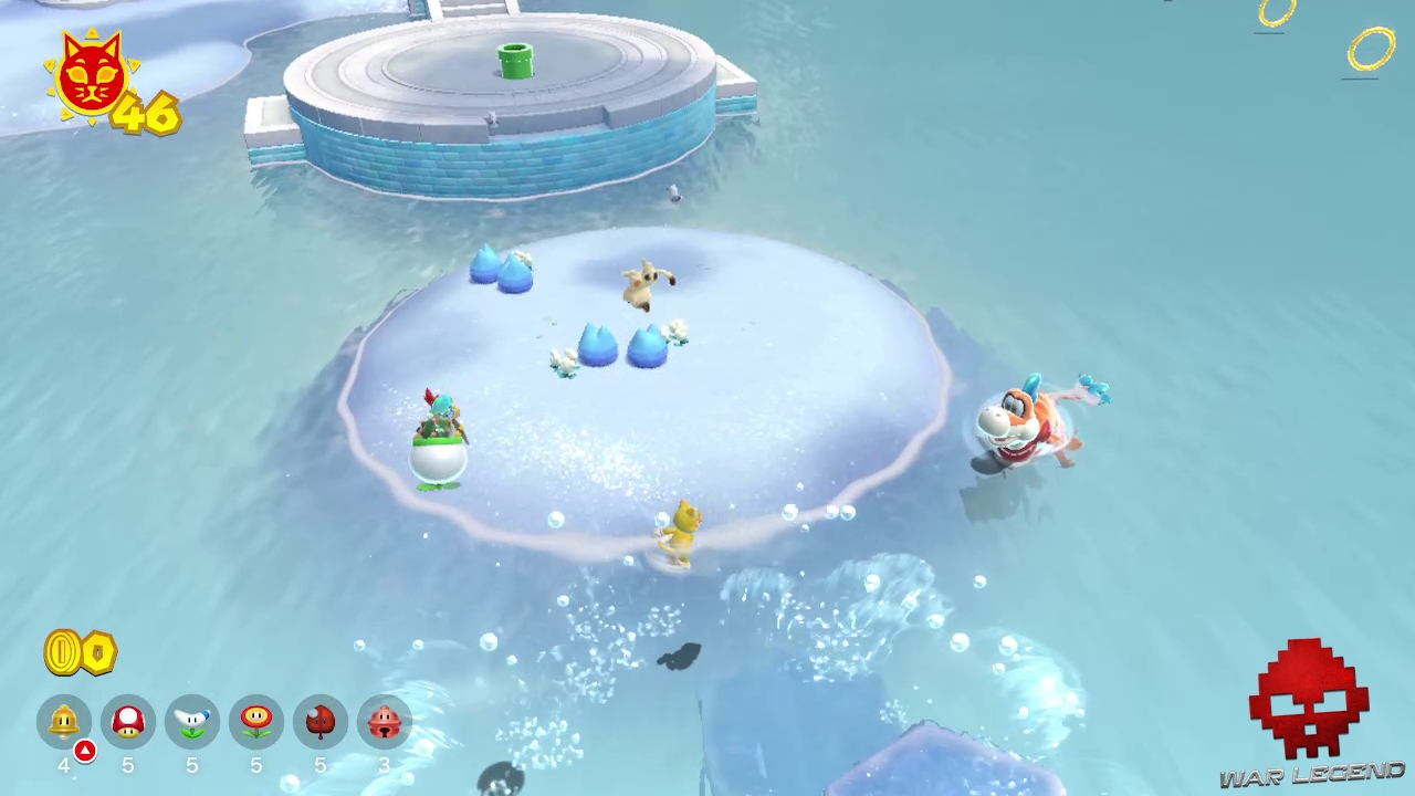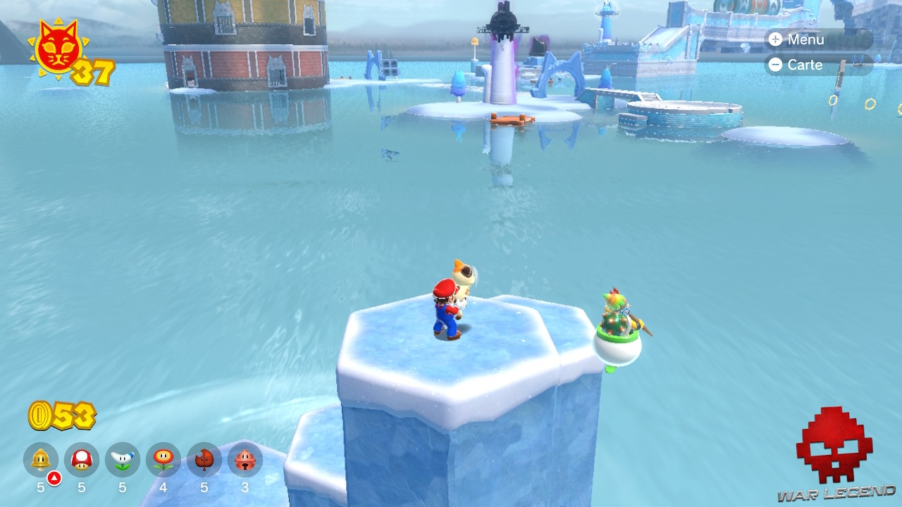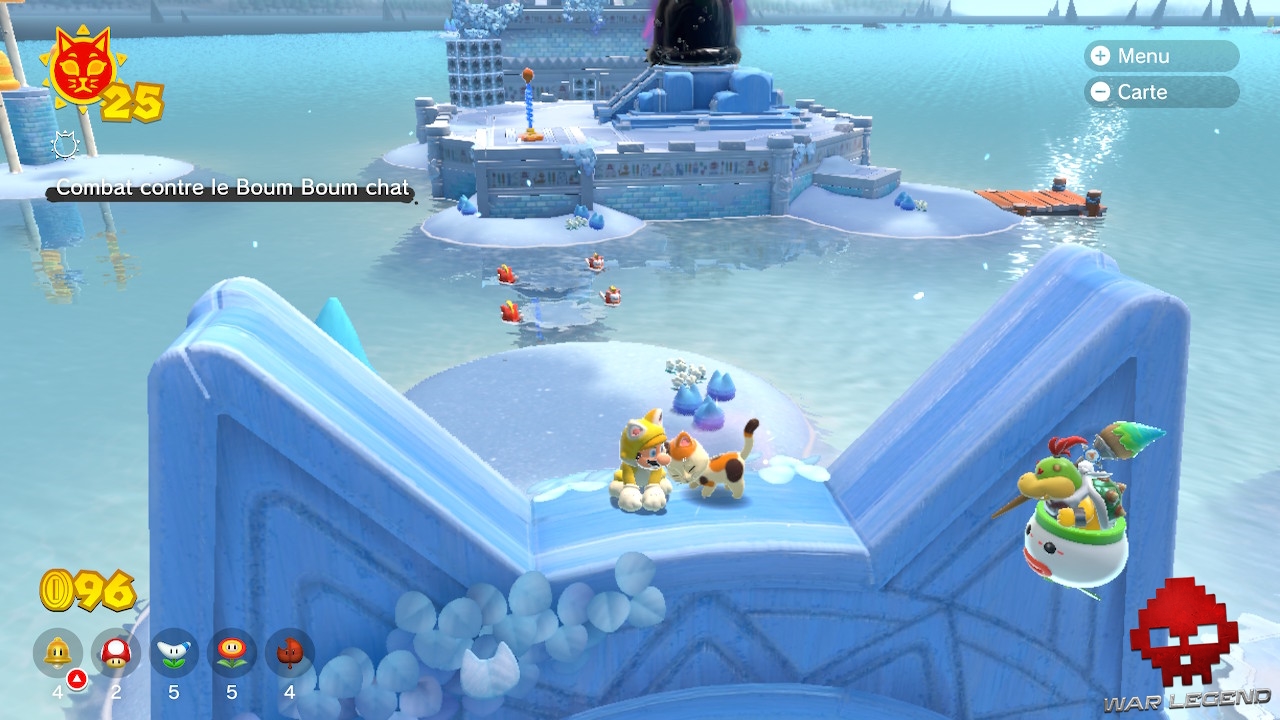 Attention, vous n’aurez pas la distance pour sauter depuis le sommet du bloc de glace et atterrir sur la terre ferme. La partie subtile se trouve là : au sommet de votre saut vert le rivage, lancez le chaton. Une fois tous les deux à terre, dépêchez-vous de le récupérer.