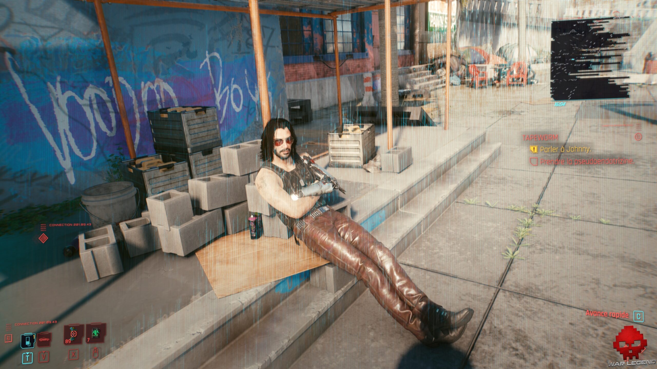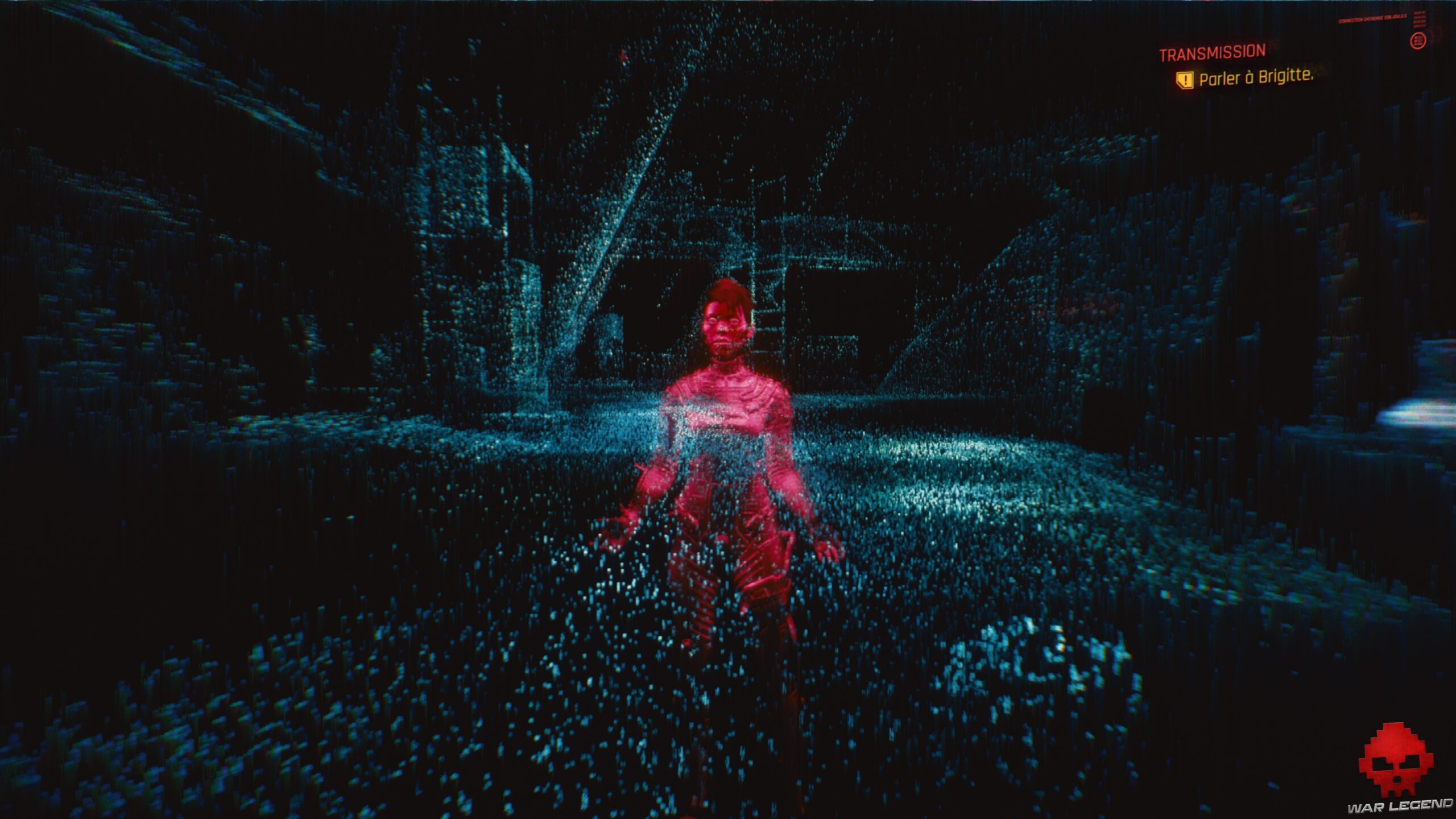 Avancez vers Brigitte dans sa représentation numérique et rapidement les choses vont bouger. Vous vous retrouvez de nouveau dans la peau de Silverhand.
