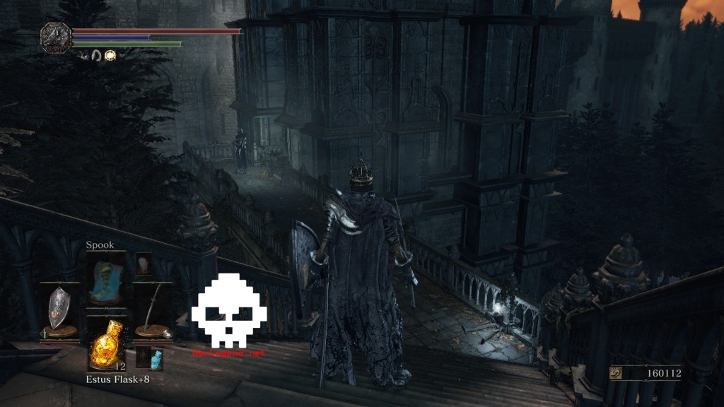 Note : vous pouvez retourner à Anor Londo, là où vous avez tué Aldrich, pour récupérer un anneau. A l’étage, pénétrez dans la salle où l’illusion de Gwenevere vous avait accueilli dans Dark Souls. Prenez son Anneau de la Princesse Solaire (Sun Princess Ring).