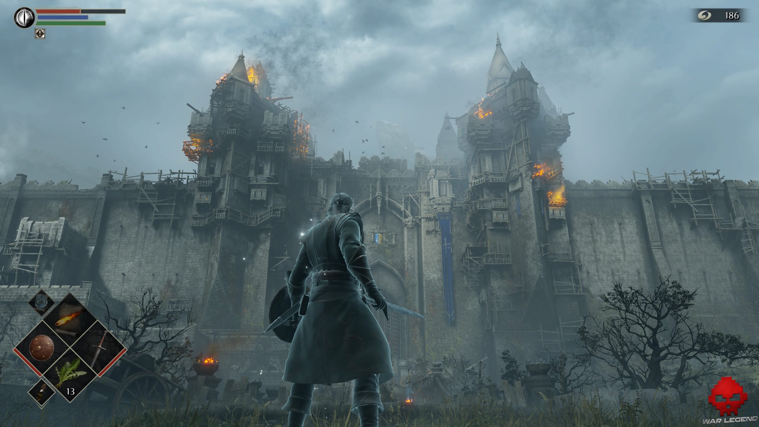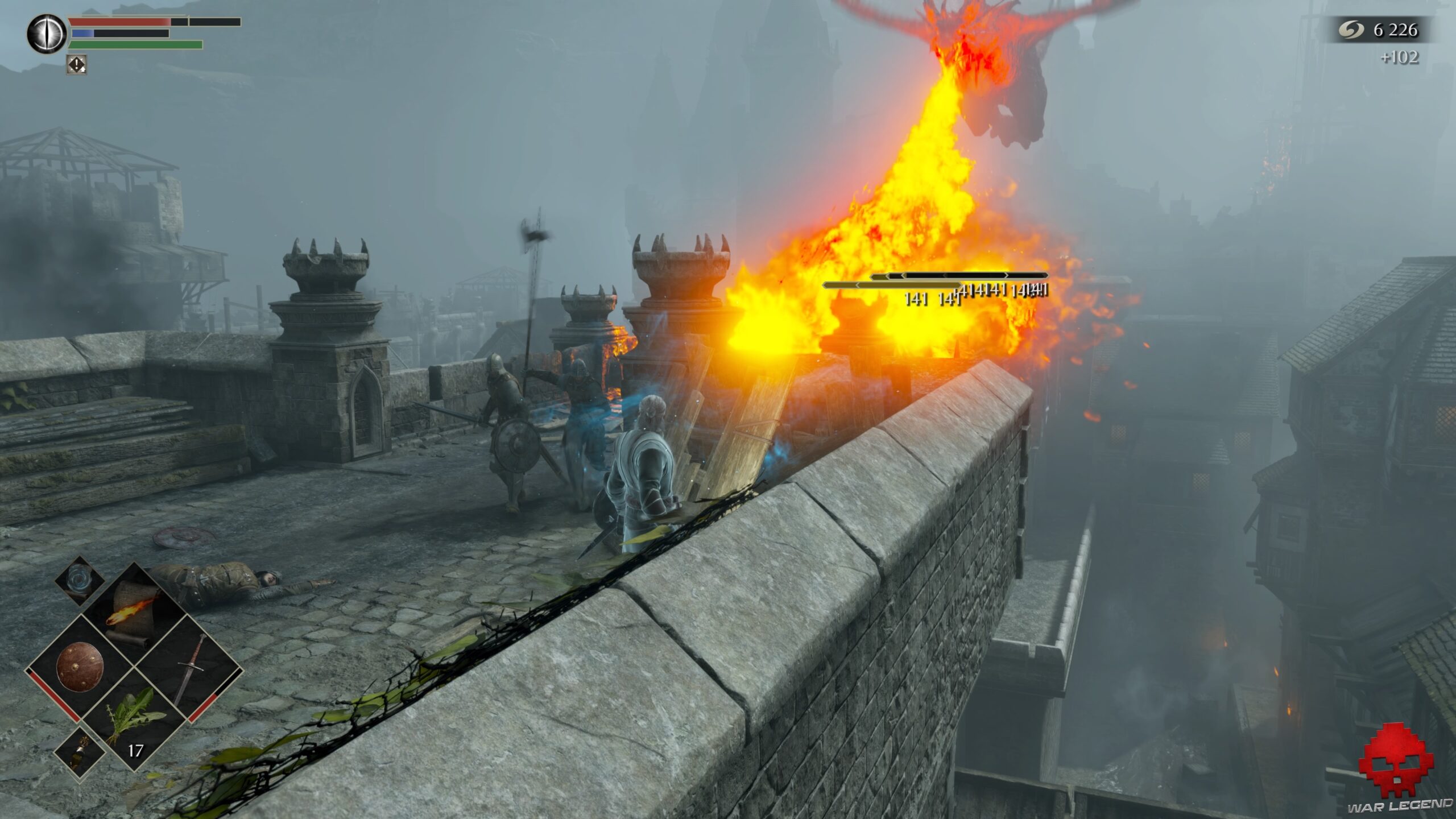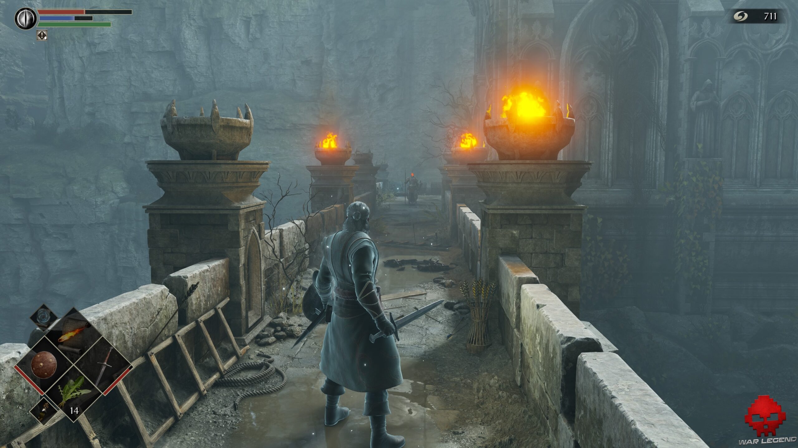 Retour au pont, cette fois-ci ne traînez pas sprintez pour le traverser avant que le dragon ait eu le temps de rappliquer. Tuez les 2 arbalétriers survivants et avancez en prenant soin de récupérer l’Âme de soldat inconnu sur la droite juste avant de passer la porte.