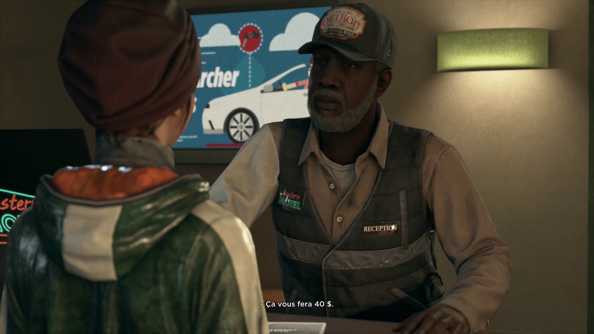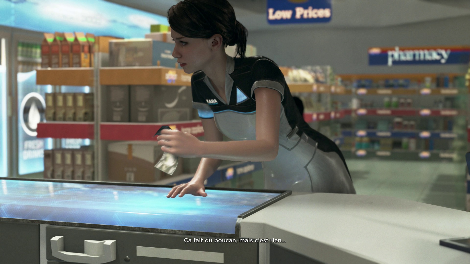 Rendez-vous au supermarché et adressez-vous au caissier. Il ne peut malheureusement pas vous aider. Kara remarque alors la caisse qui contient de l’argent pour payer la chambre du motel.