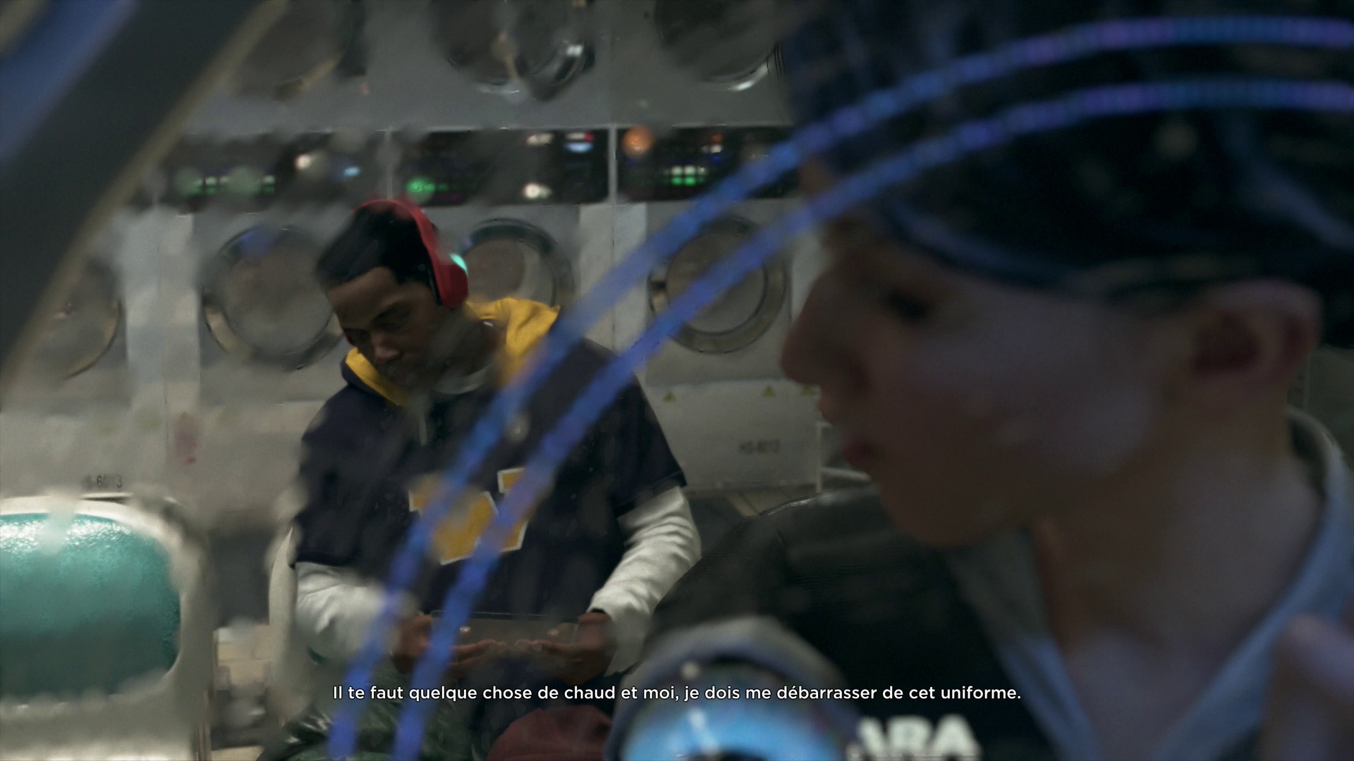 Dirigez-vous à la machine à laver en face de l’homme assoupi.