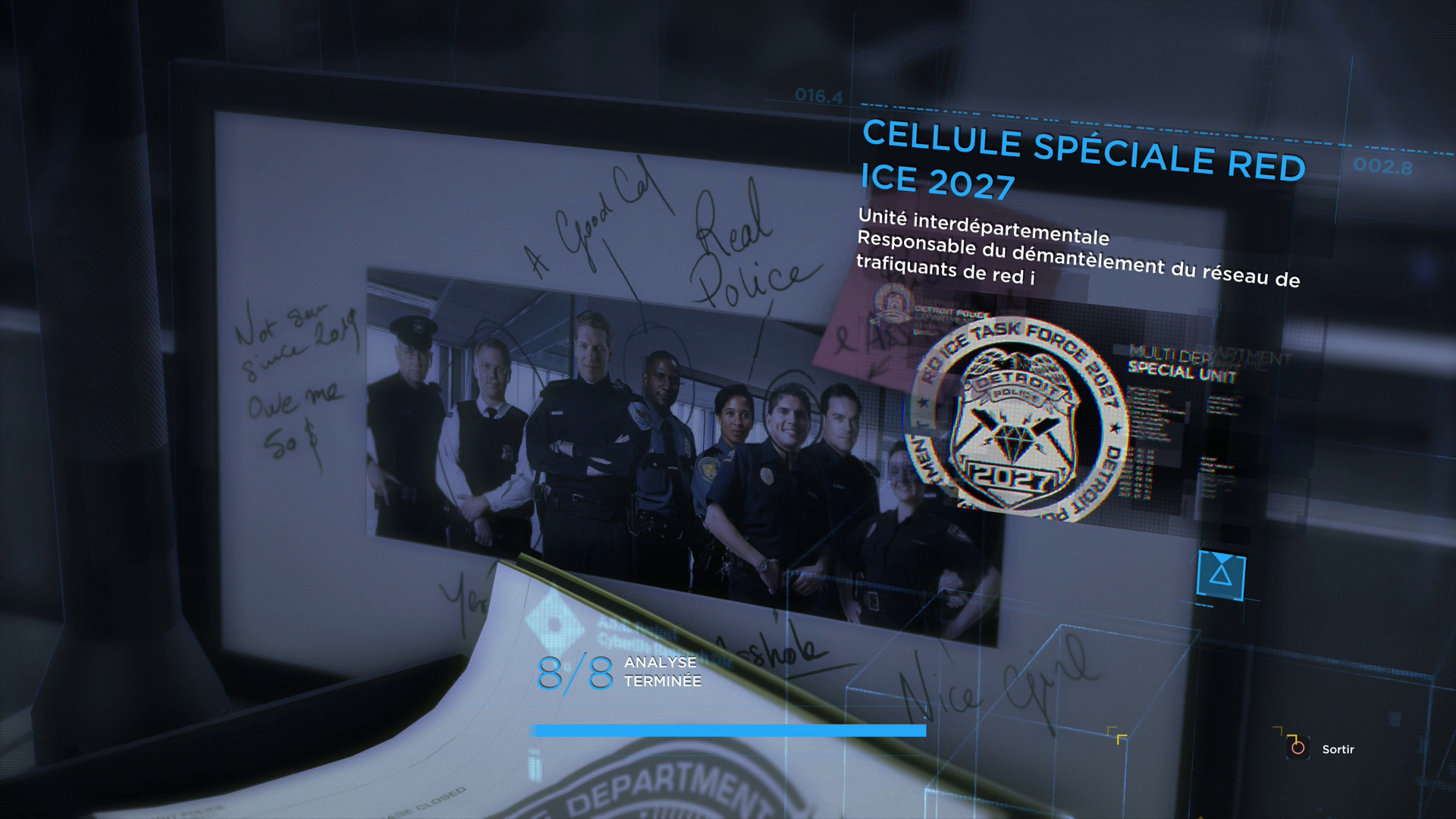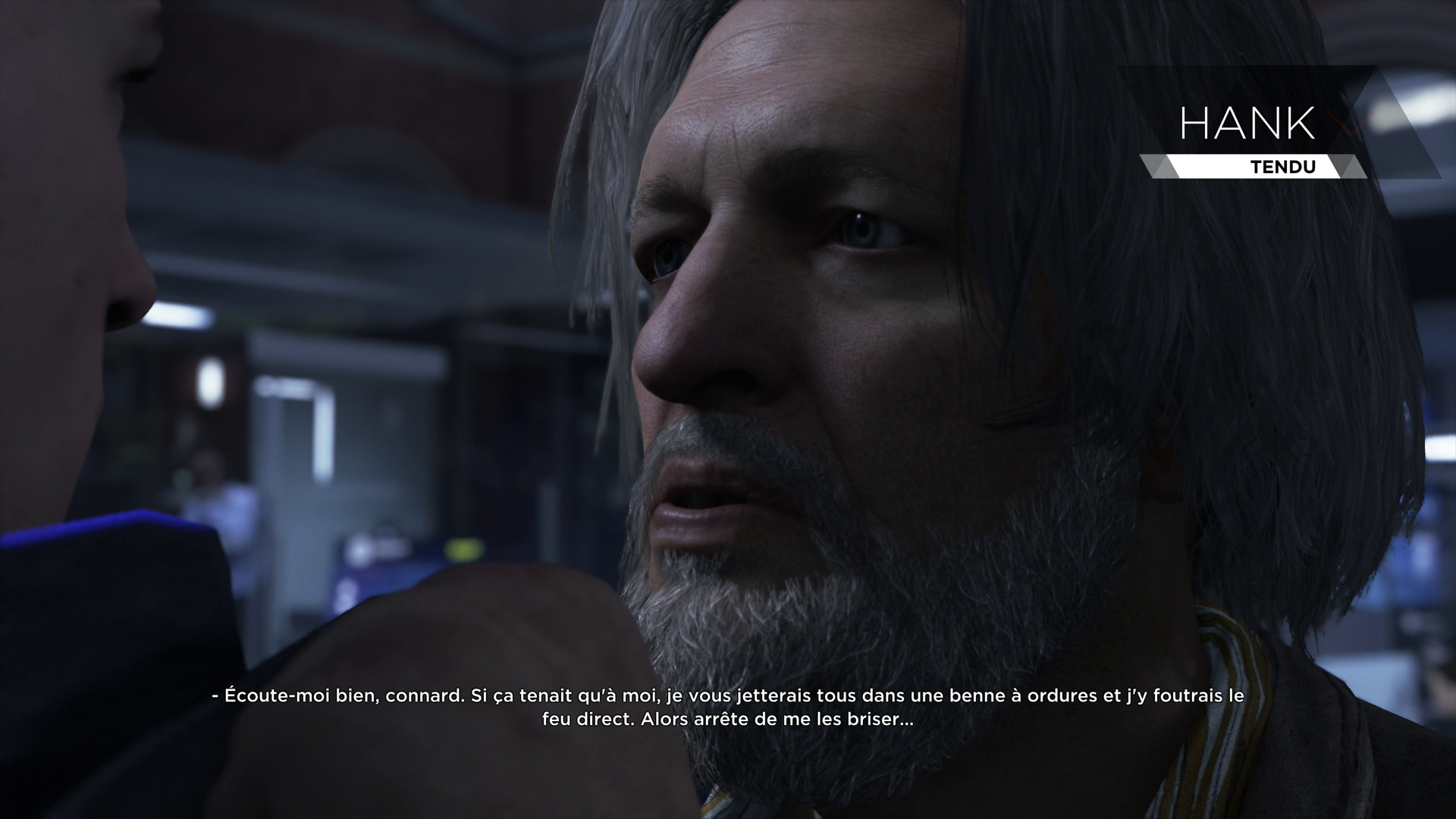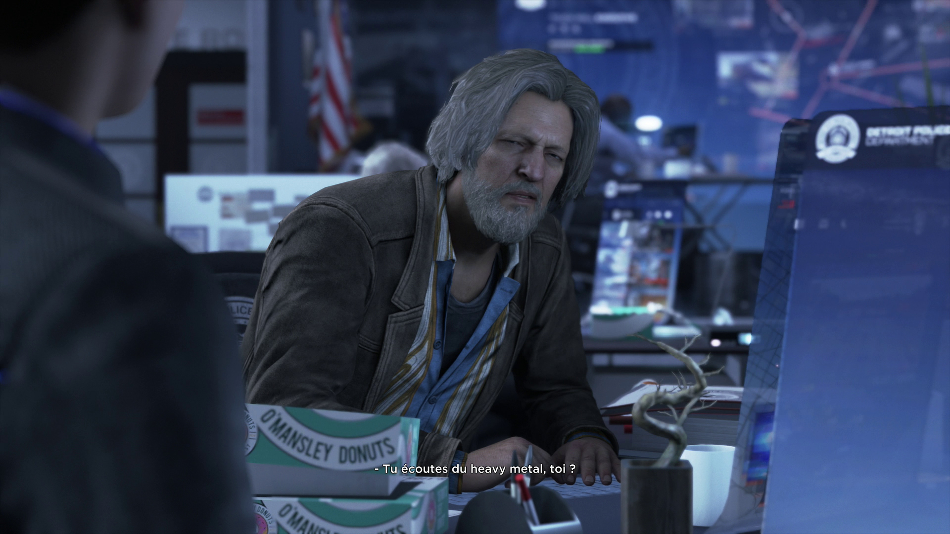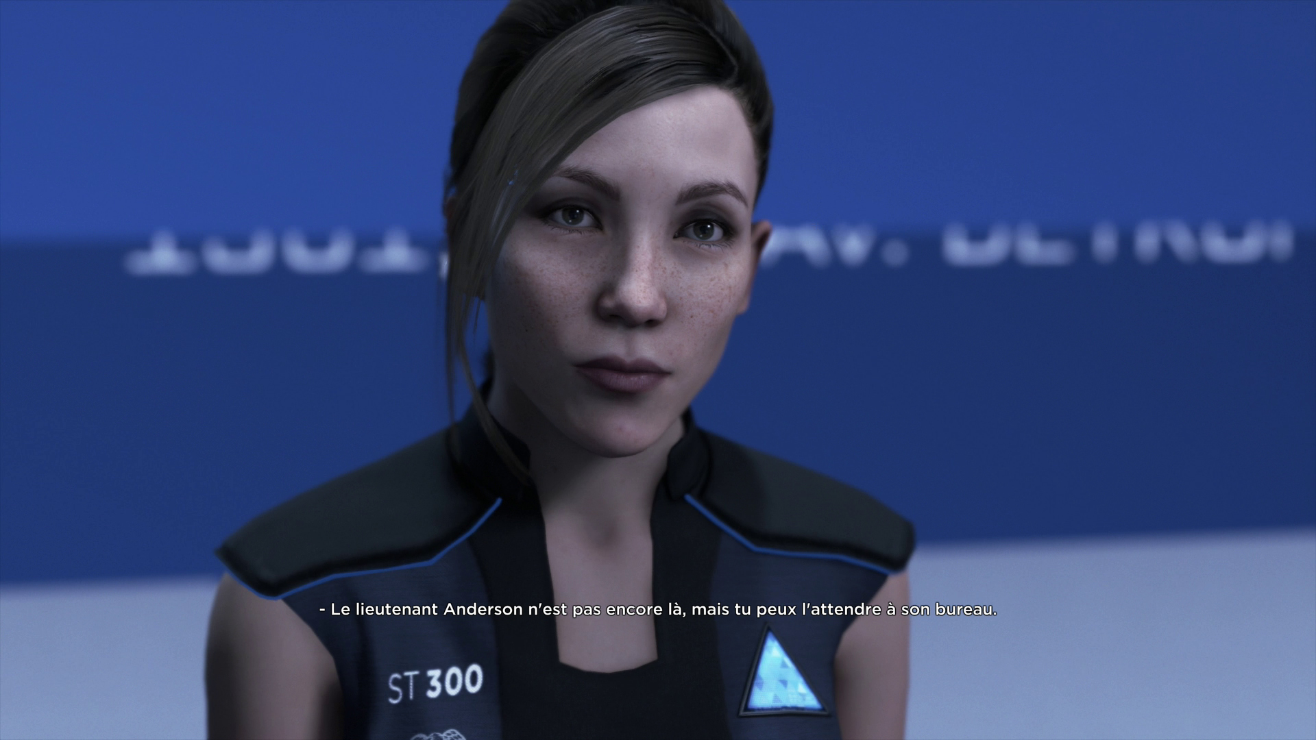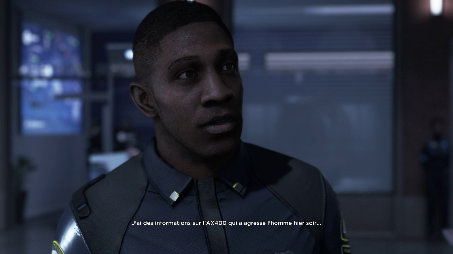 Un collègue policier intervient et annonce qu’une androïde qui a agressé son maître la veille a été aperçue en ville. Connor et Hank se mettent en route.