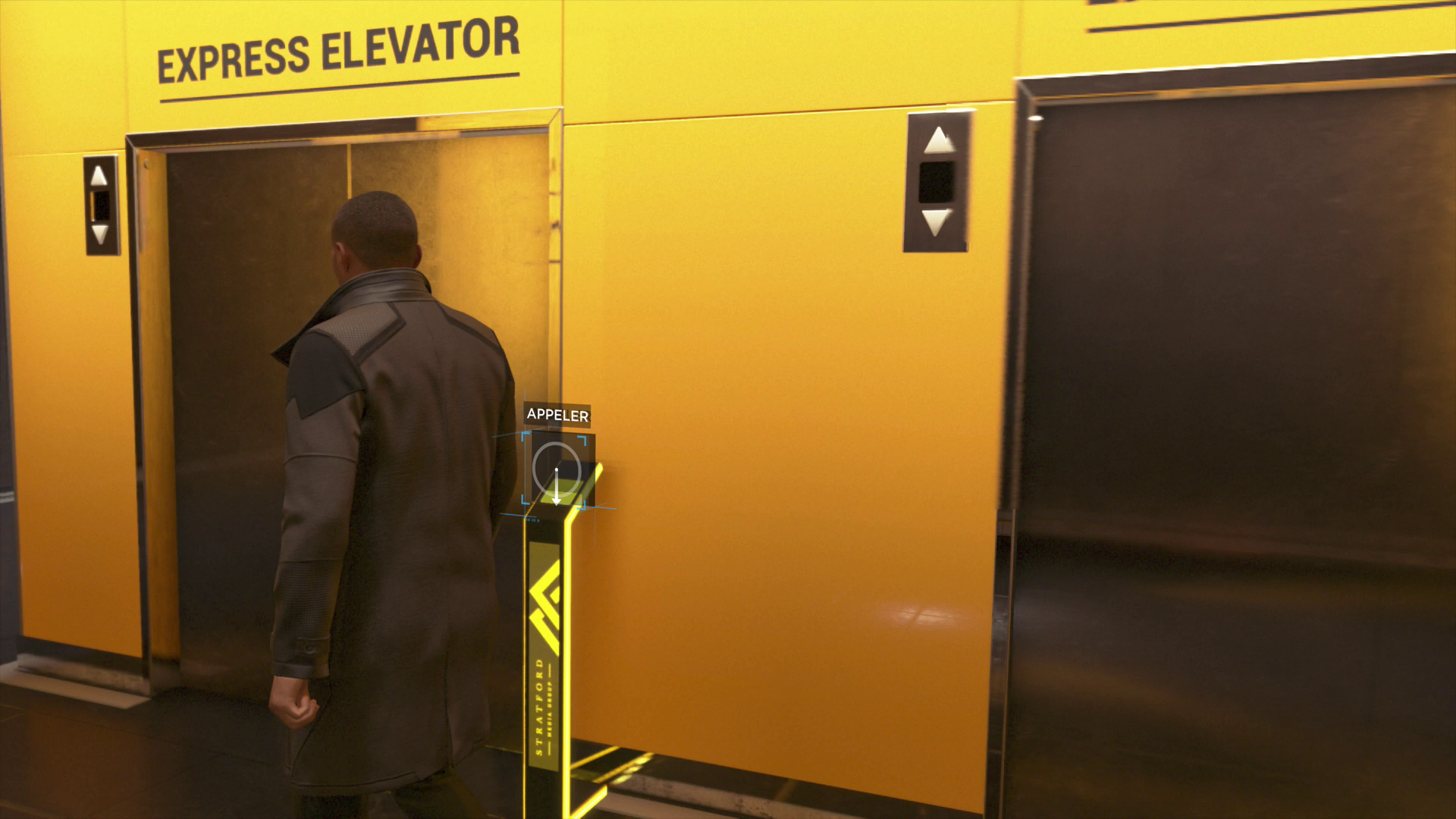 Une fois qu’elle vous débloque les portiques, continuez jusqu’aux ascenseurs.