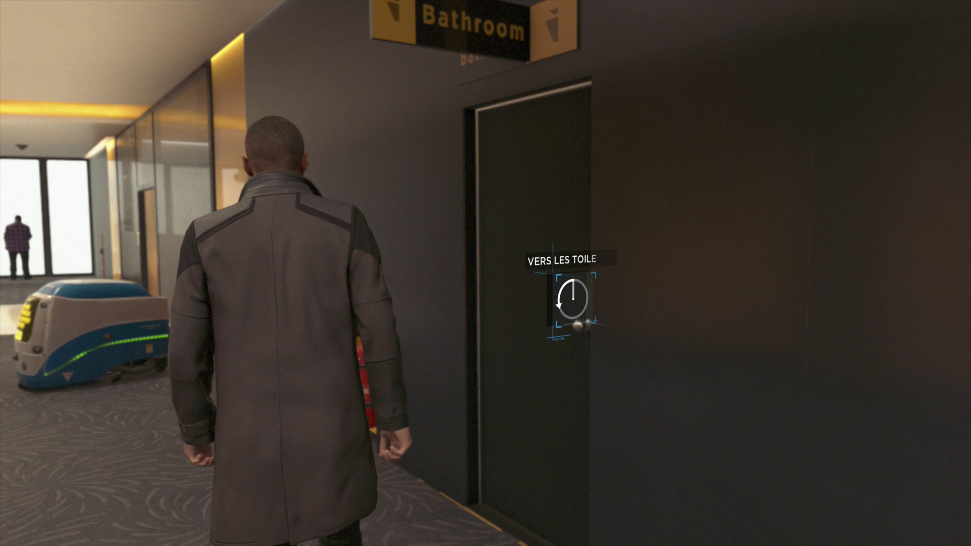 Une fois déguisé, utilisez R2 pour chercher l’androïde d’entretien et parlez-lui.