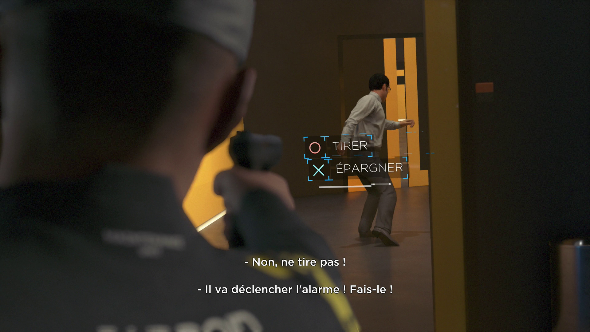 À ce moment, l’un des humains tente de s’enfuir. Ne tirez surtout pas.