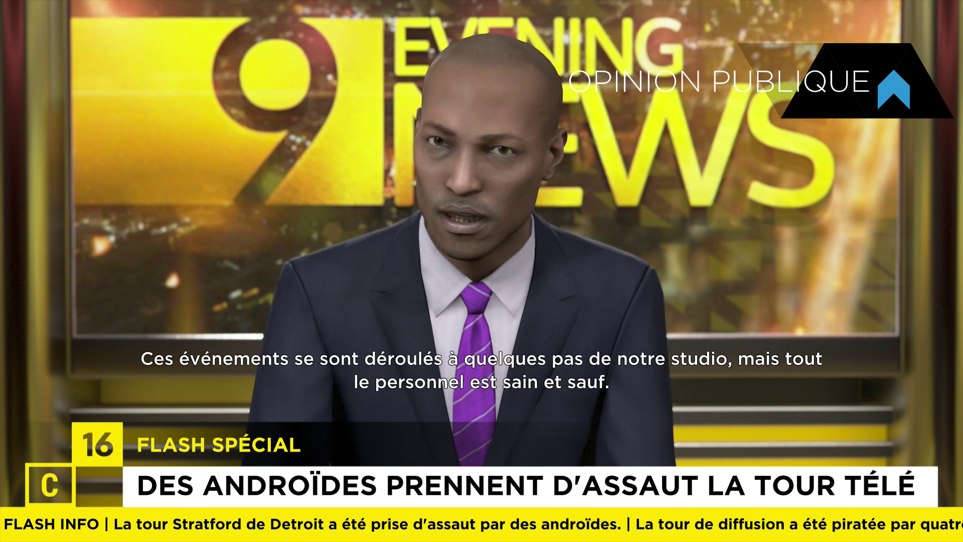 Markus et les androïdes ne supportent plus leur condition et veulent faire passer un message aux humains. Passer à la télé semble être un plan adéquat.