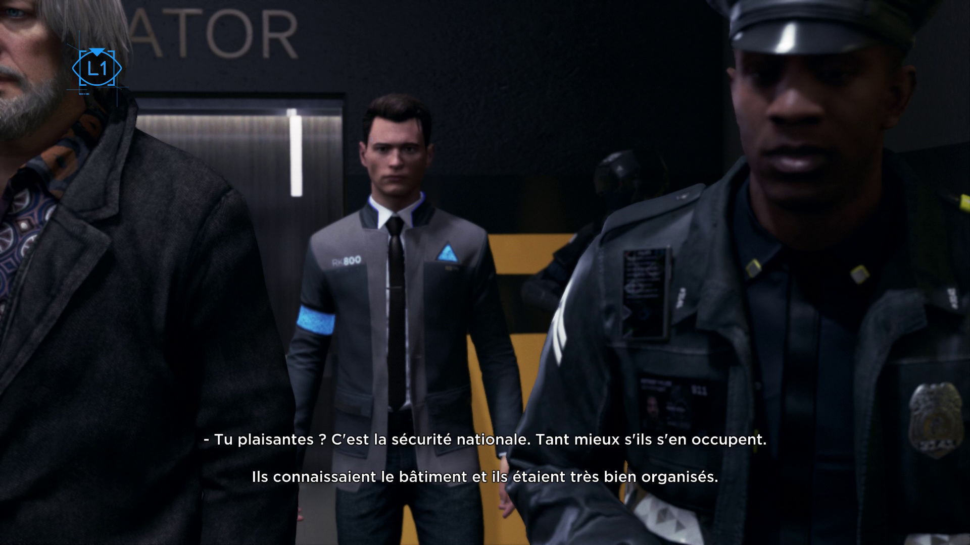 Après votre rencontre avec le « sympathique » agent Perkins, utilisez la console au centre. Le discours de Markus que vous avez façonné est diffusé.