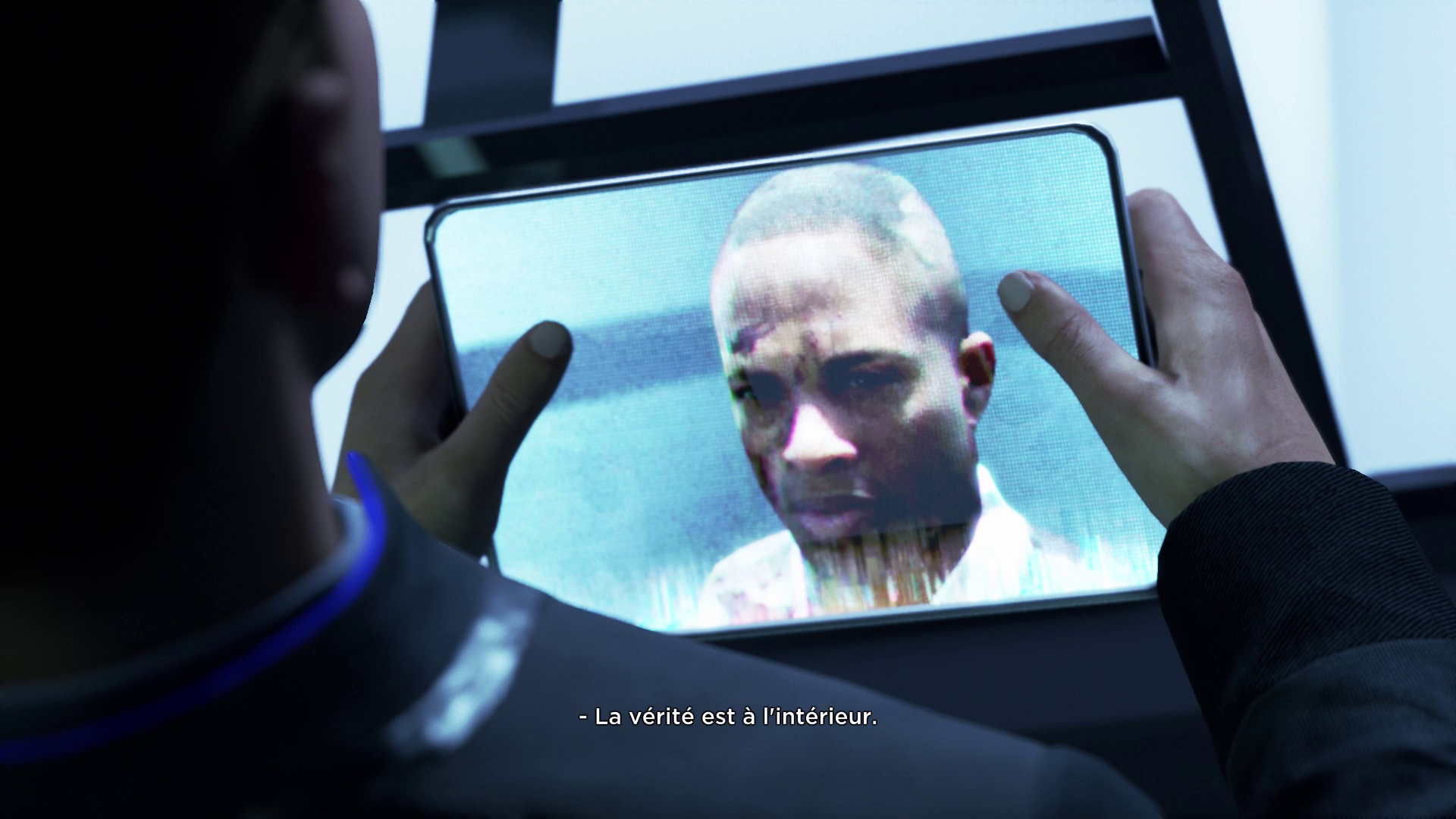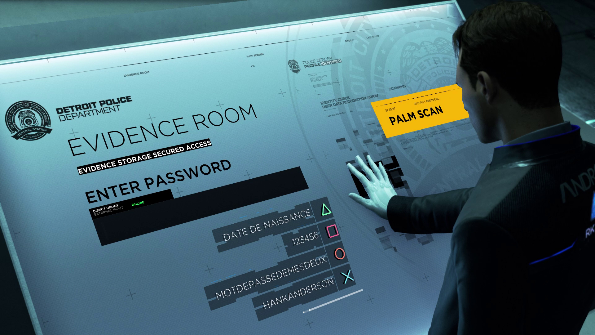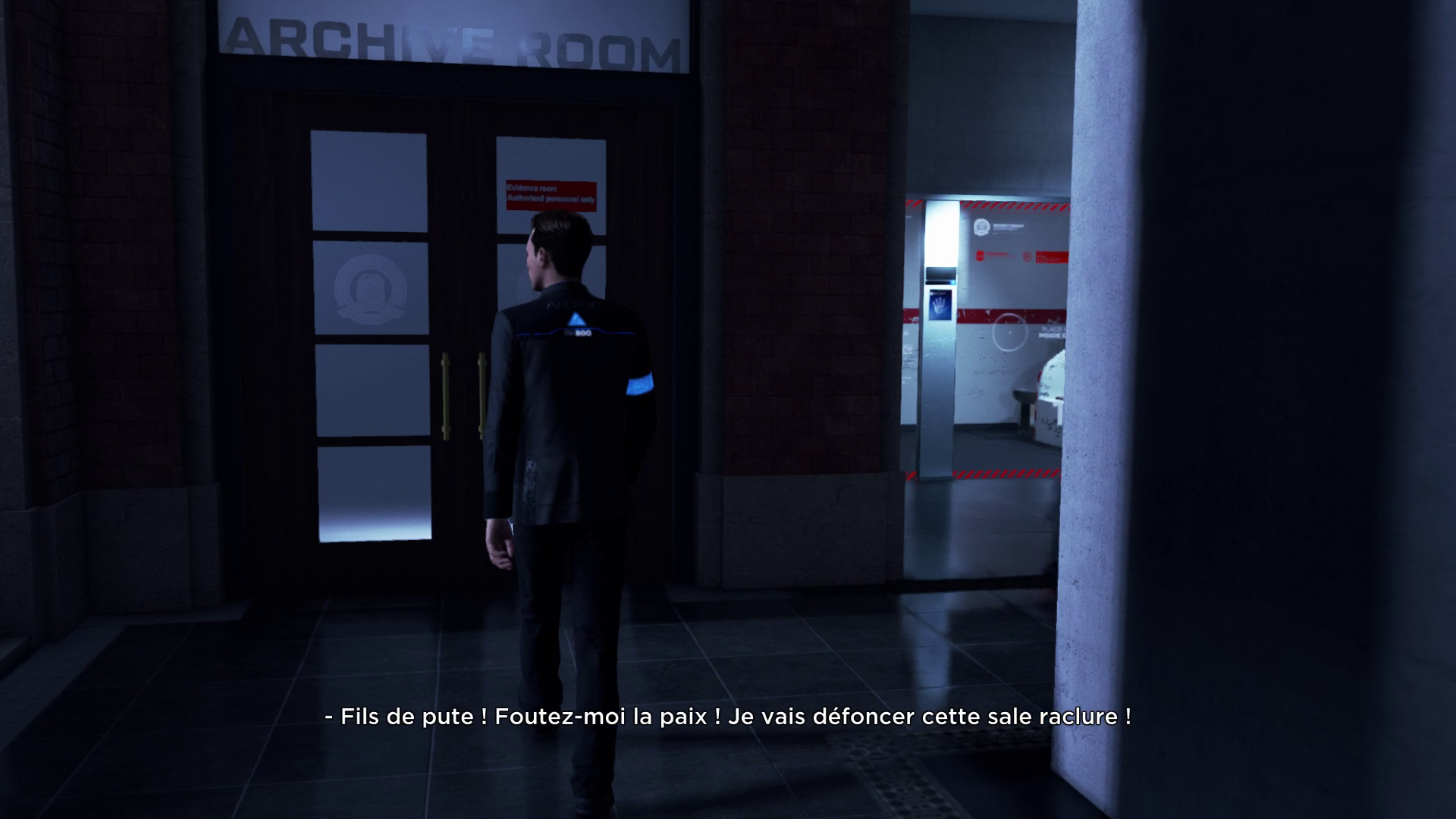 Perkins débarque et Connor profite d’une diversion de Hank pour chercher la solution (illégalement) dans la salle des preuves.