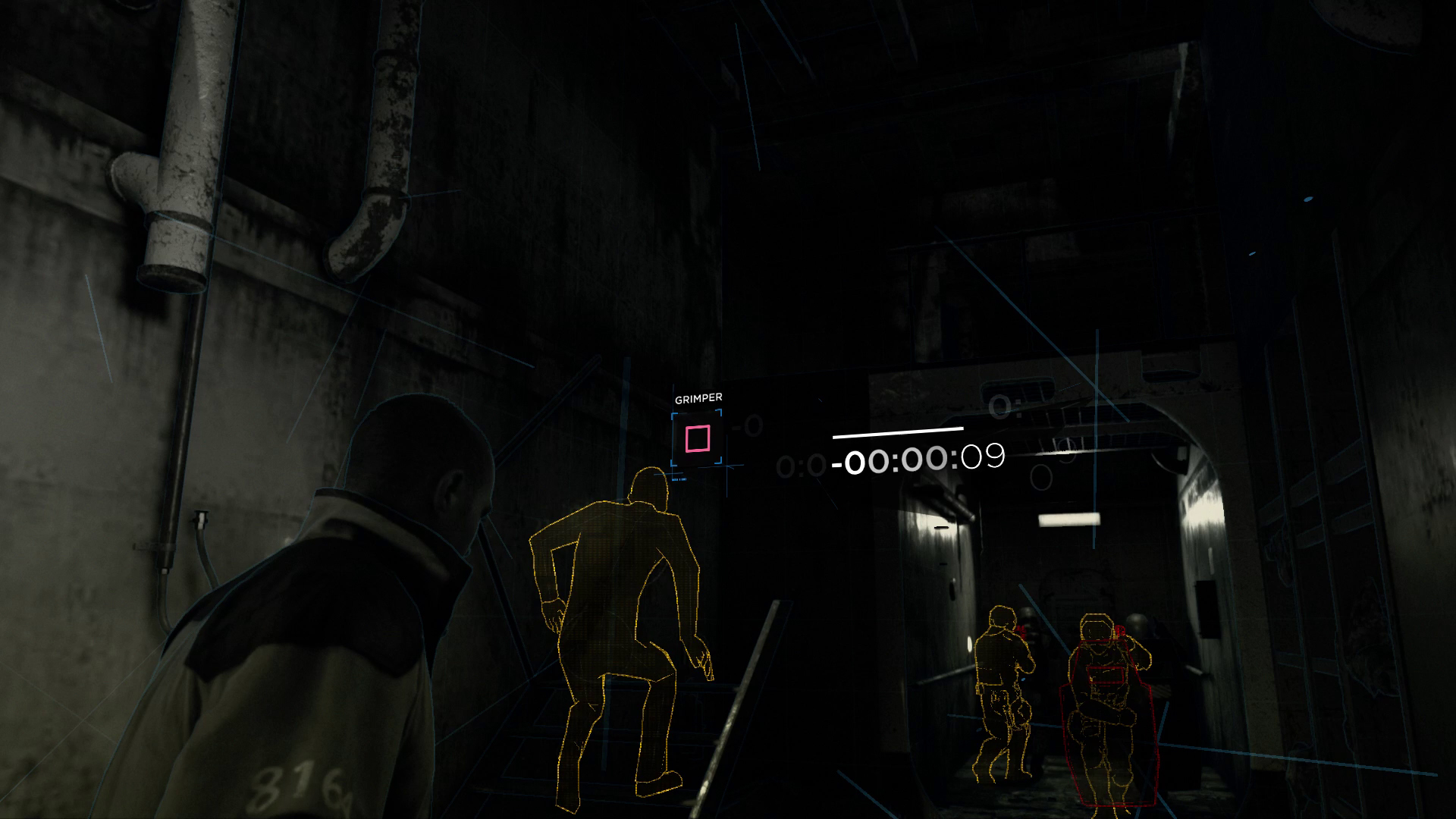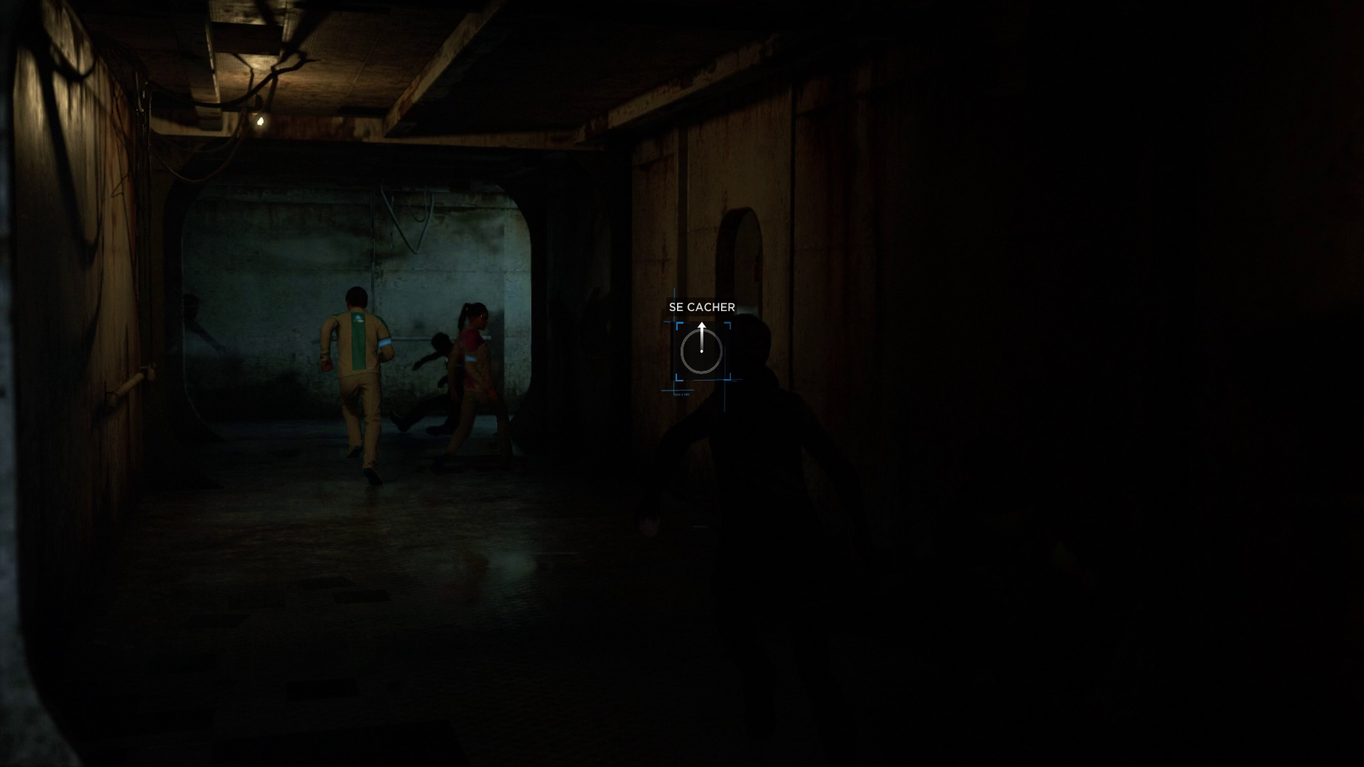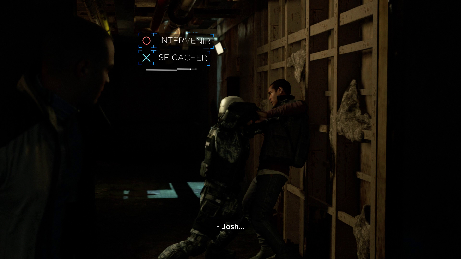 Une fois dans le couloir, deux soldats repèrent Markus. Sautez à gauche.