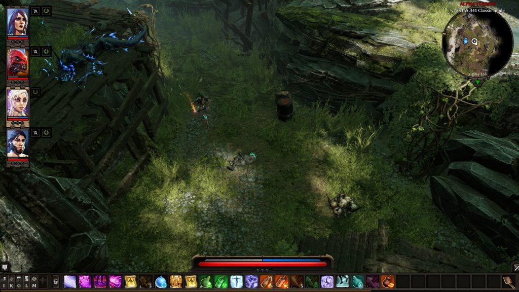 Note : vous pouvez aussi détruire le tronc d’arbre à proximité et passer par le trou ainsi révélé. Vous arriverez bien vite aux geôles avec la possibilité de prendre à droite en sortant de la cellule, crocheter/détruire la porte pour revenir à la surface à côté de la statue du Divin via un passage caché ou partir à gauche et employer la manière forte face aux Magisters.
