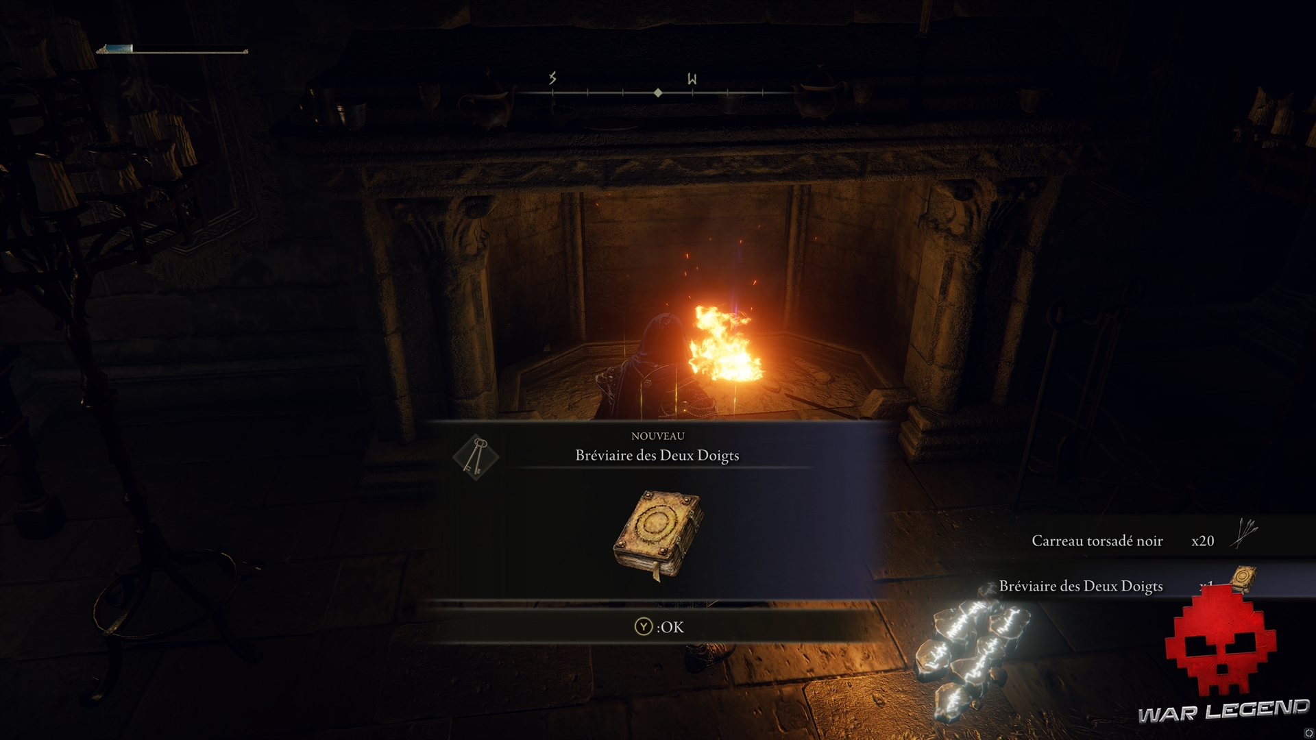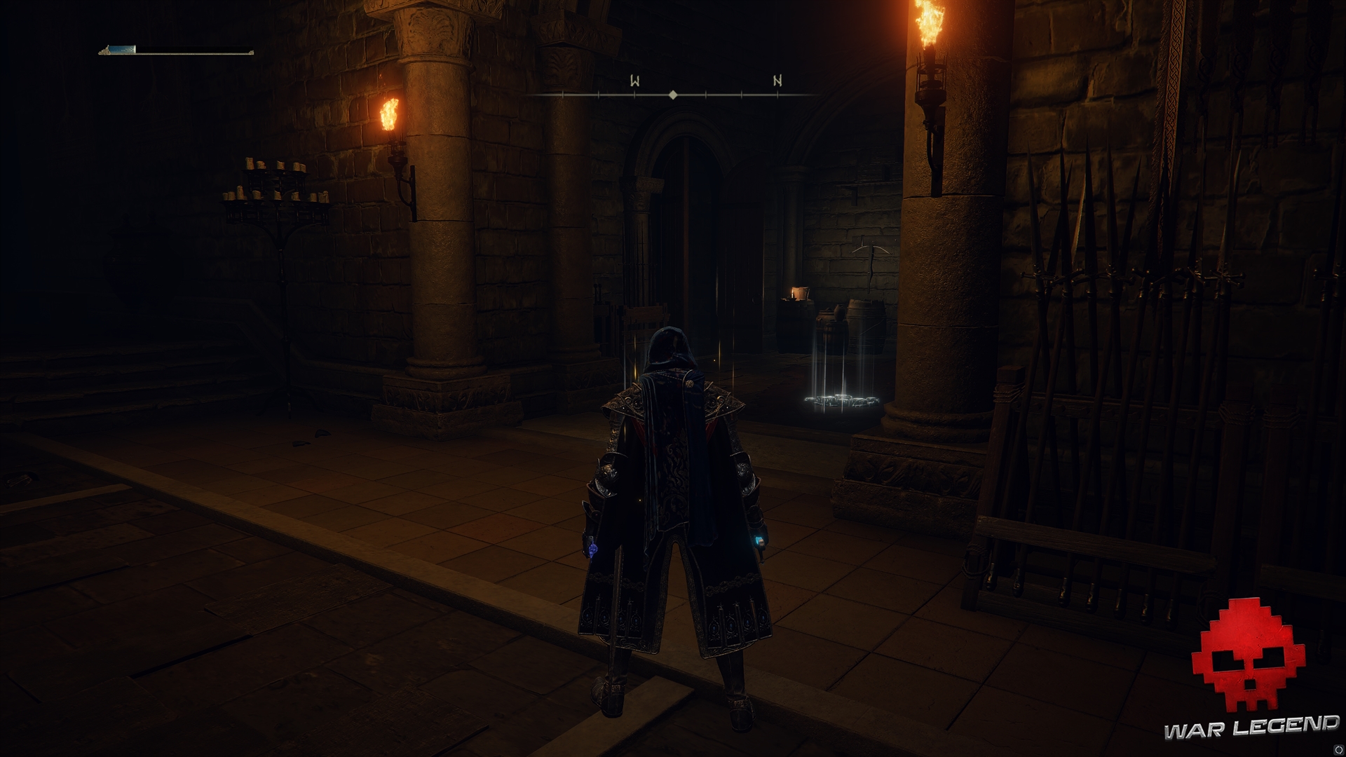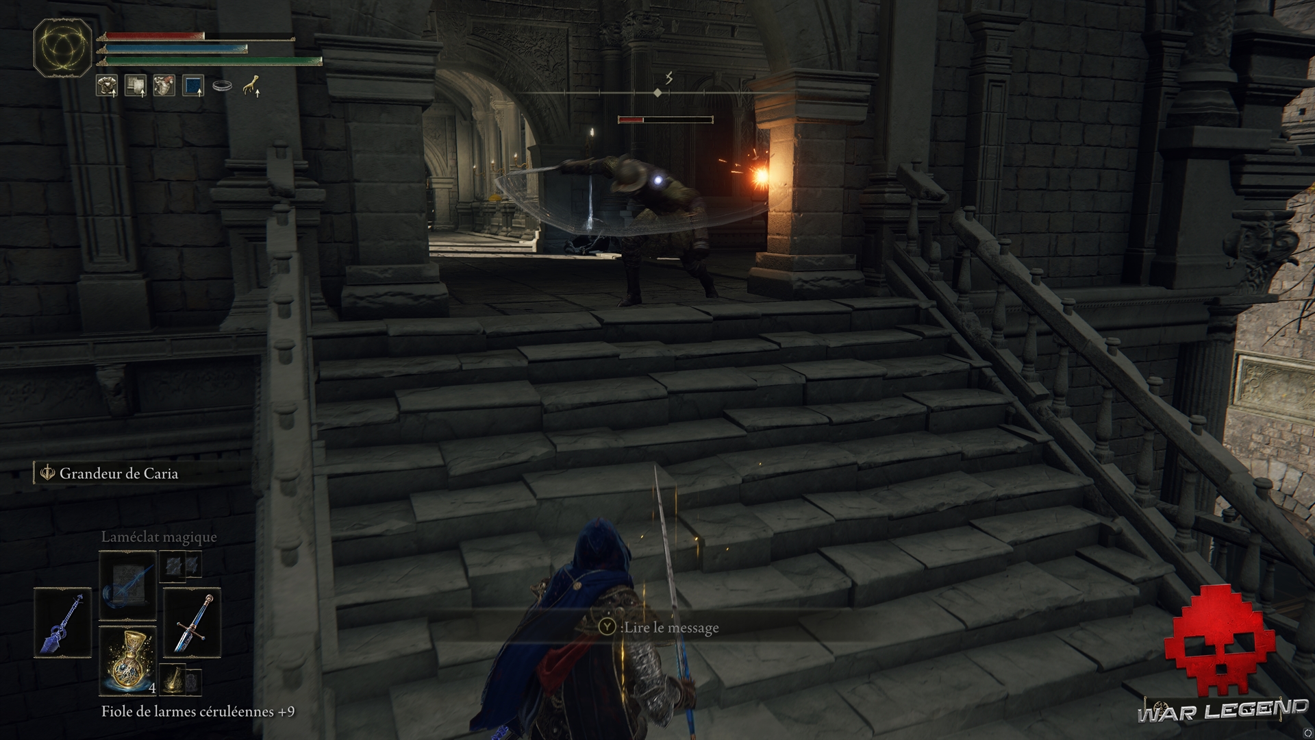 Elle vous mène dans une pièce qui débouche sur une partie inférieure du rempart et contient une Pierre de forge. Attention à l’embuscade.