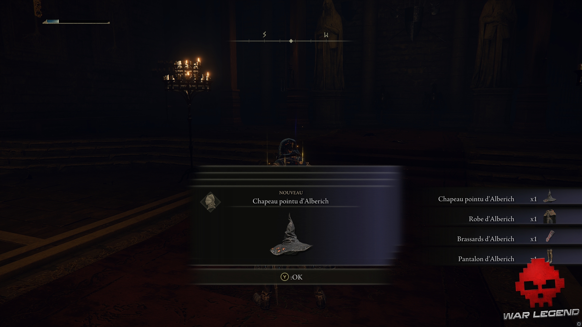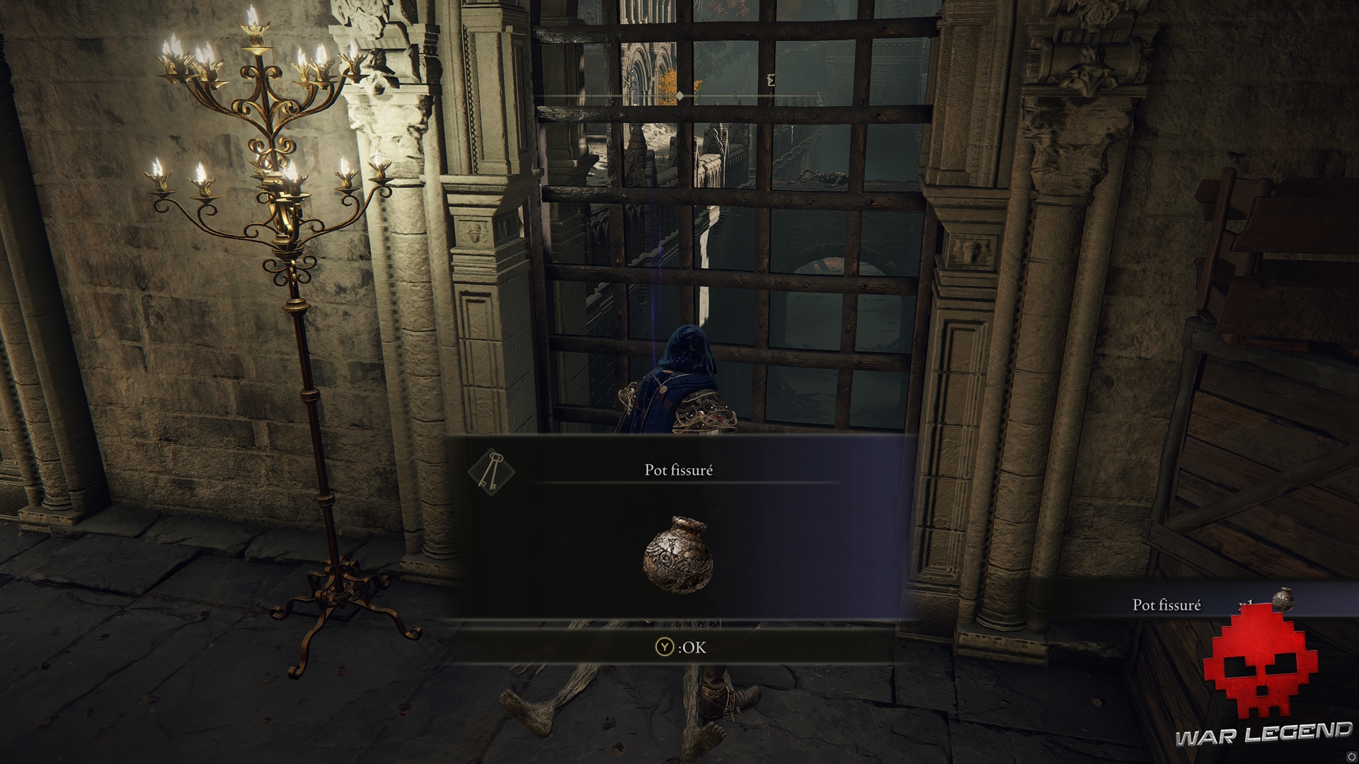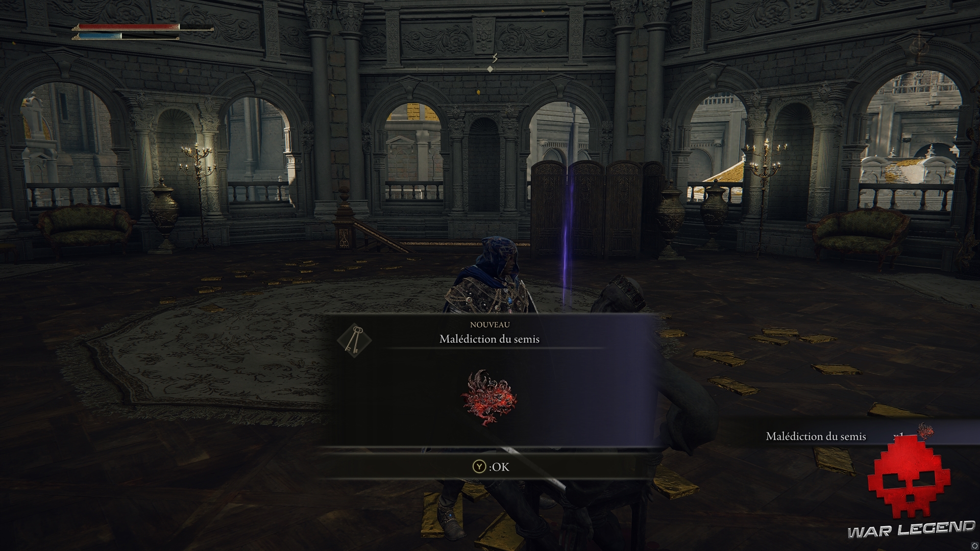 Revenez un peu plus en amont et montez à l’échelle : tuer le guerrier Réprouvé pour obtenir un casque, le Cauchemar des Réprouvés, puis allez activer le site de grâce dans la chapelle. Vous obtiendrez d’ailleurs l’ensemble d’armure de Lionel.