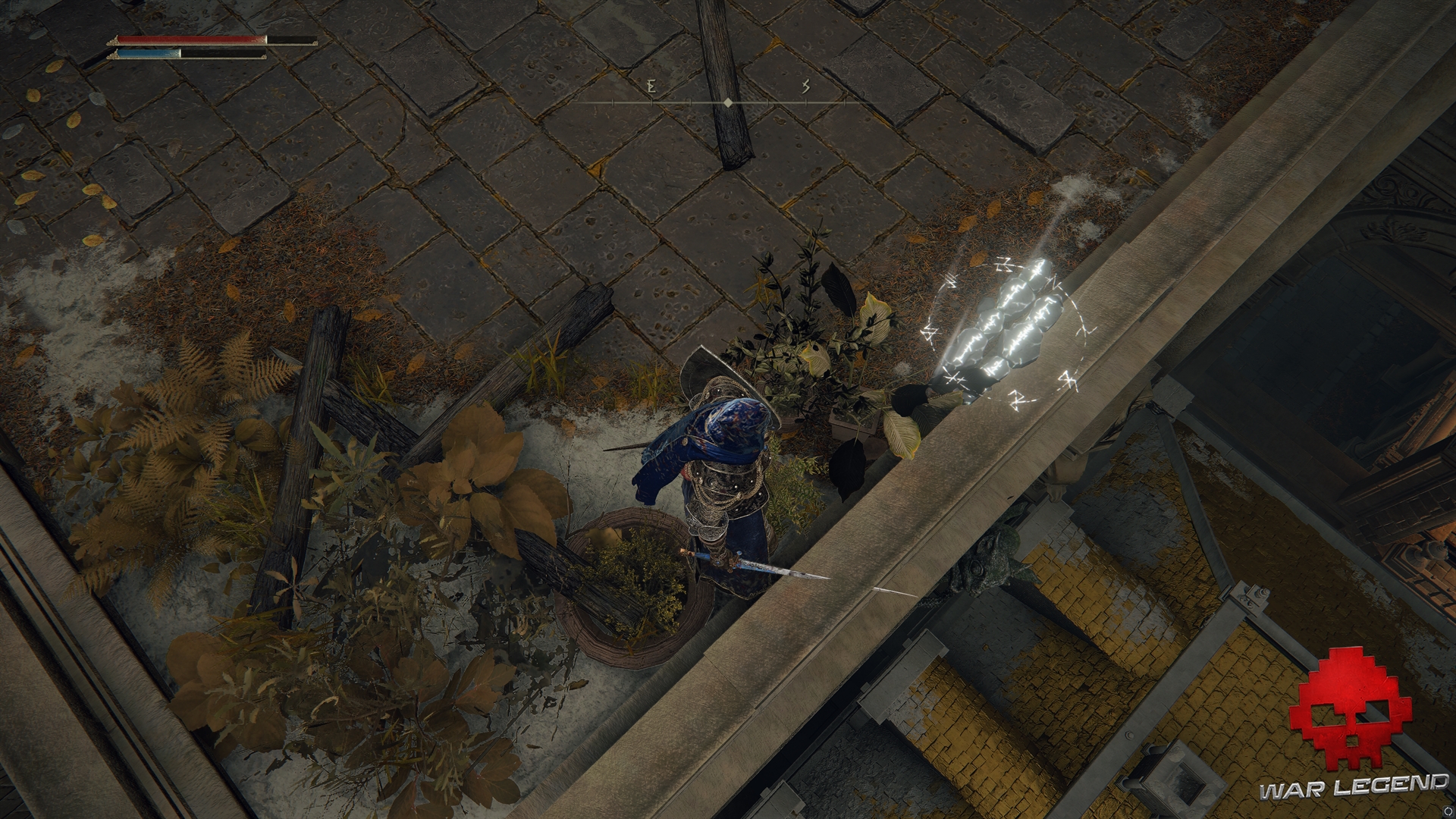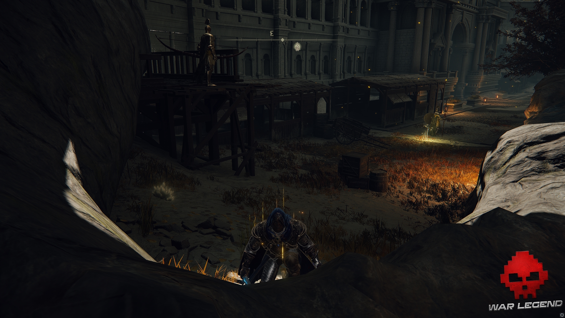 En descendant l’escalier, vous allez être rapidement confronté à un chevalier qui vous traque avec un arc. Partez tout de suite vers la droite, afin de prendre un autre chevalier dans le dos. Attention, un 3e chevalier se trouve dans la zone, dans la ruelle opposée.