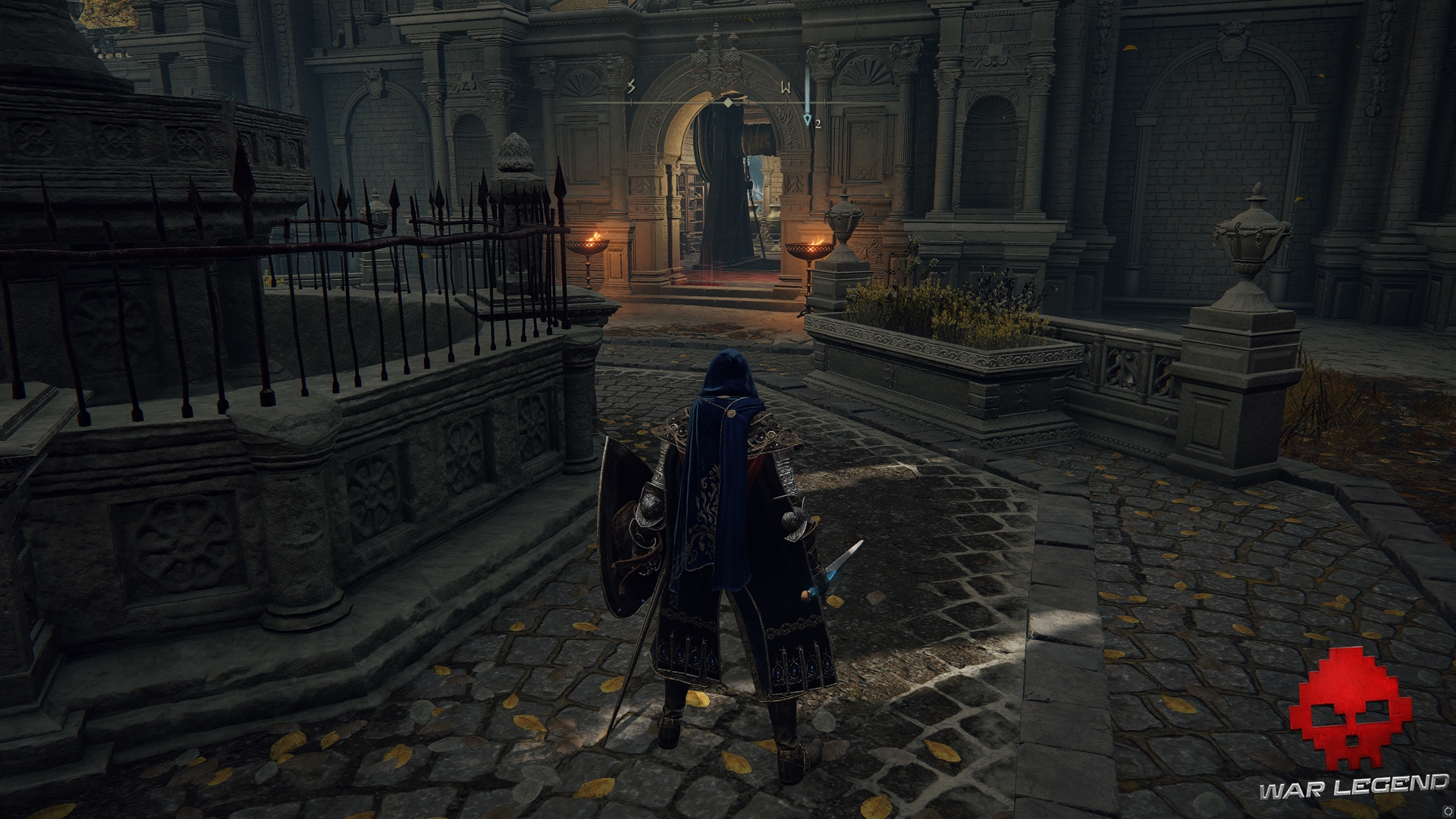 Votre premier objectif est de vous diriger la partie nord-ouest de la haute-ville. Repérez une fontaine près de la grande porte entrouverte menant au nord. D’un côté, vous aurez un petit ascenseur qui descend, tandis que de l’autre, vous aurez accès à une chapelle où vous attend un chevalier du Creuset particulièrement énervé.