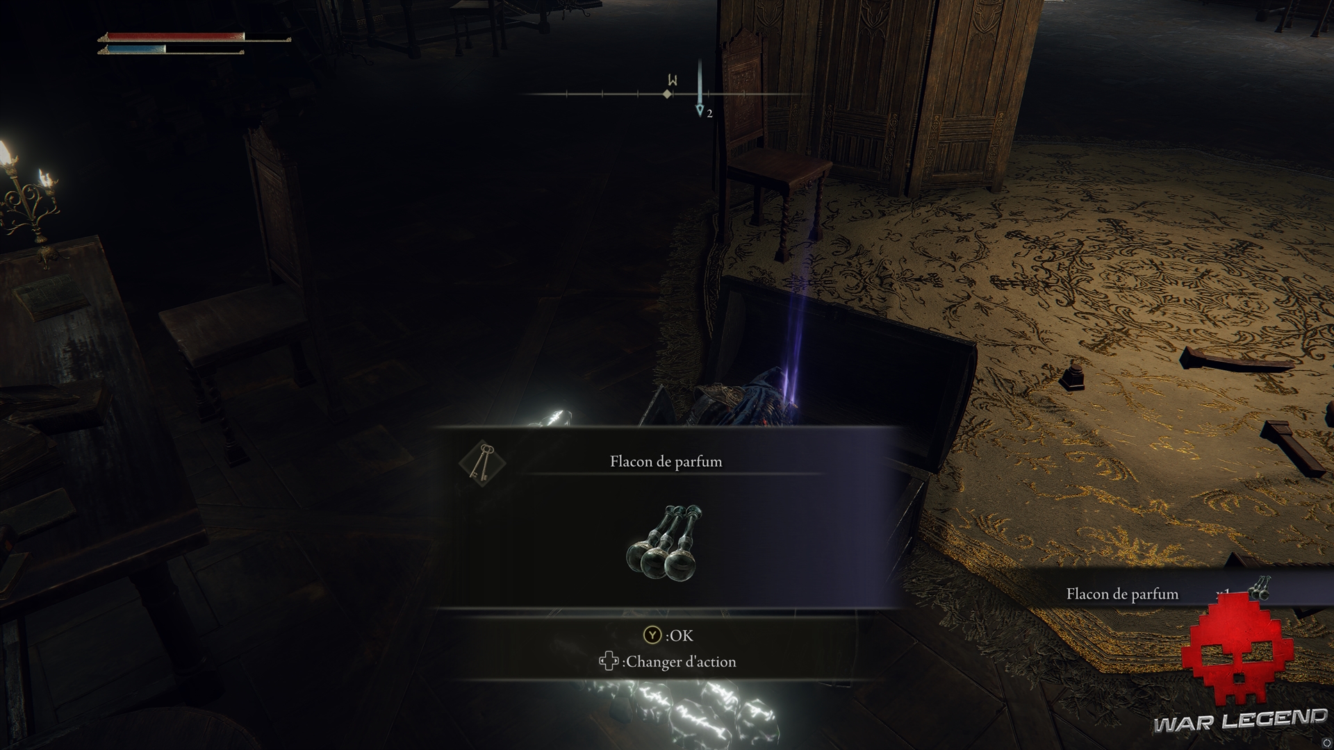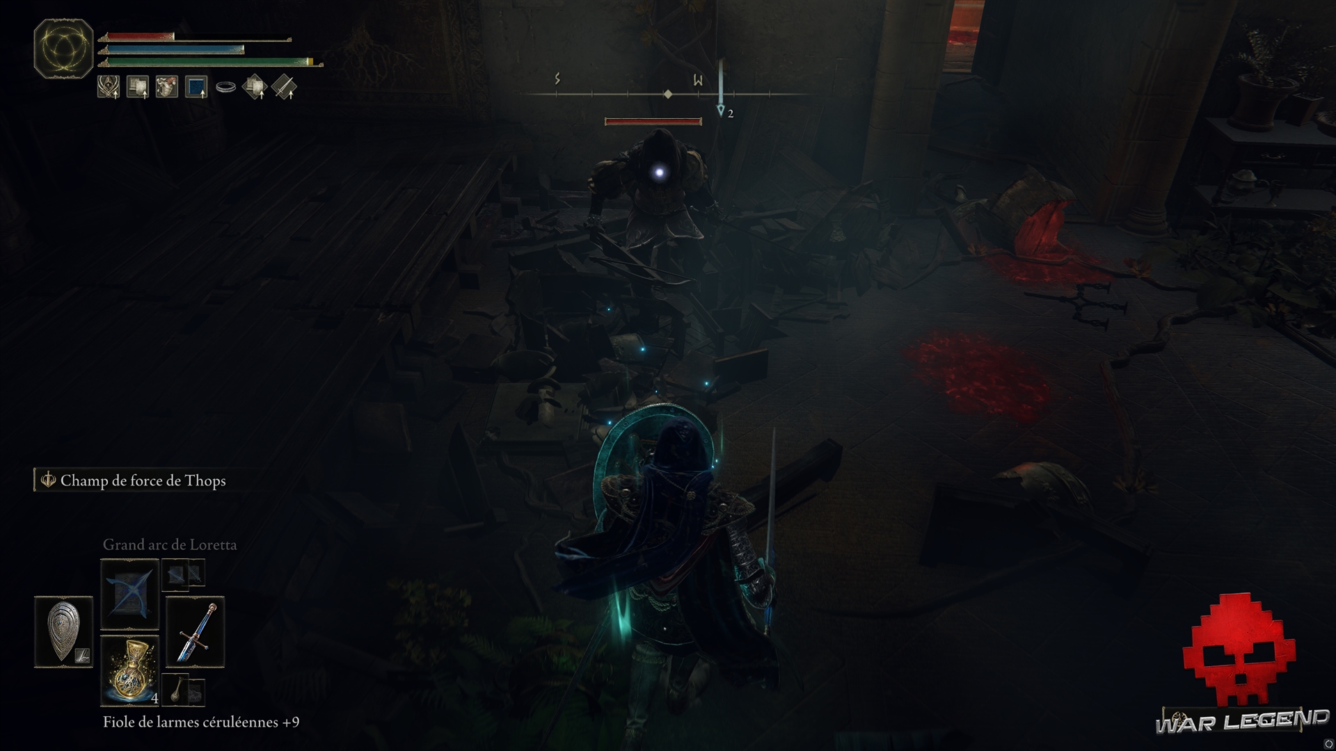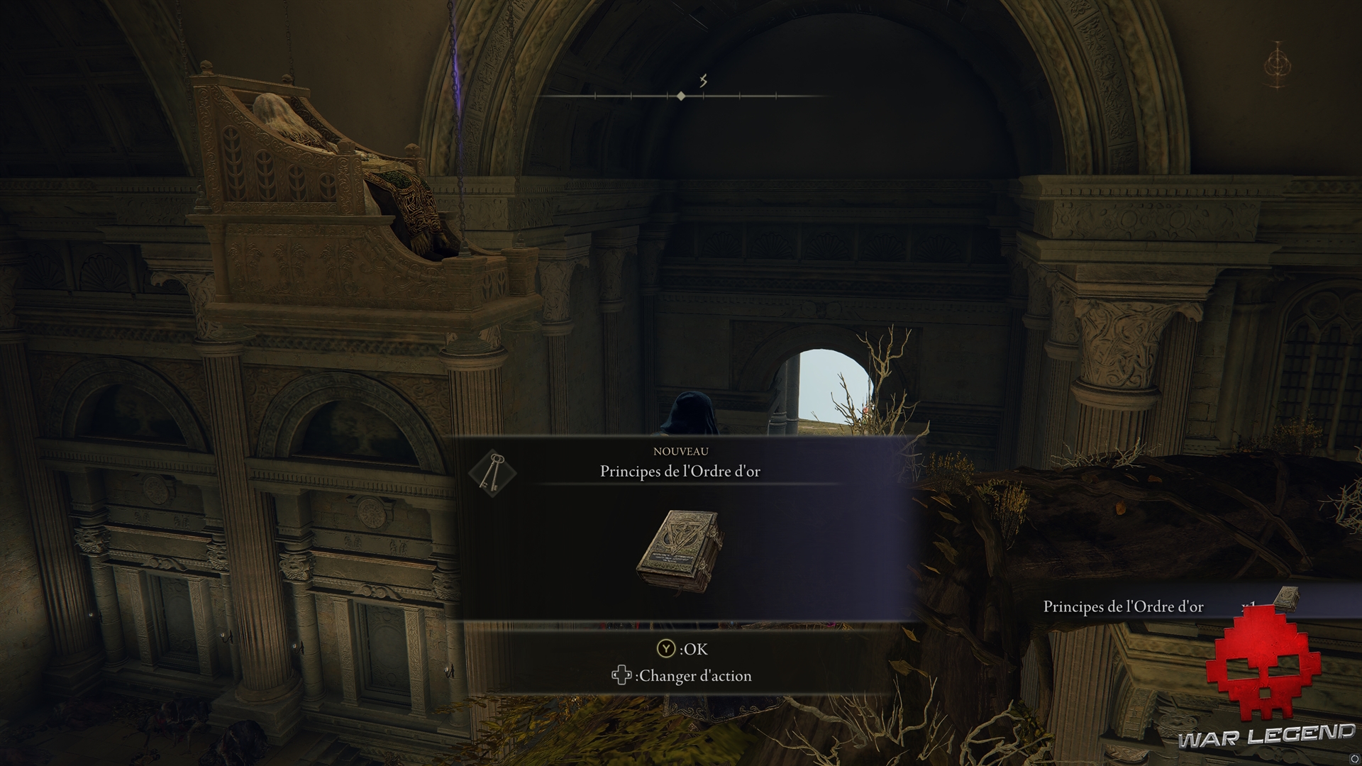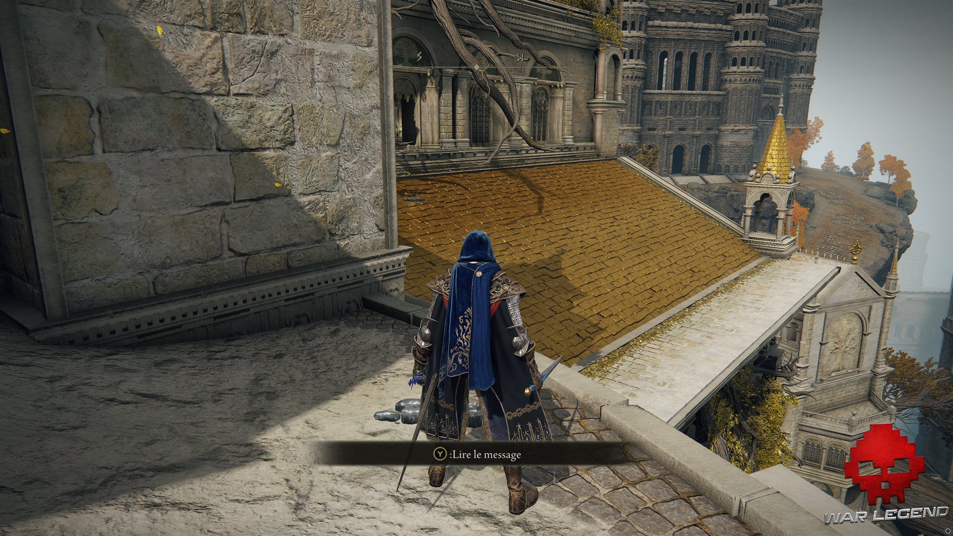 Prenez le temps de fouiller la zone, en ramassant l’Arc de l’Arbre-Monde dans un coffre, de la Rosée céleste et les Principes de l’Ordre d’or. Vous pouvez accéder à l’étage via le toit accessible depuis le chemin nord-est.